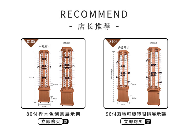5面木质可旋转移动落地式太阳镜眼镜展架陈列架货架墨镜展示架子