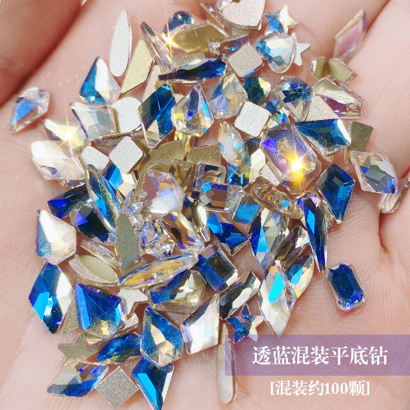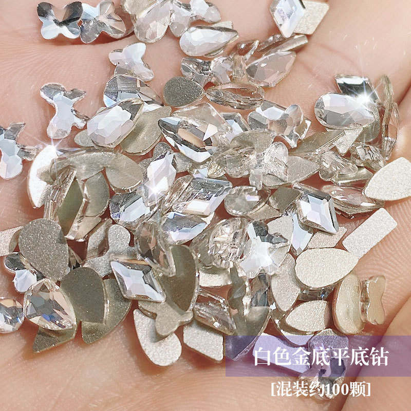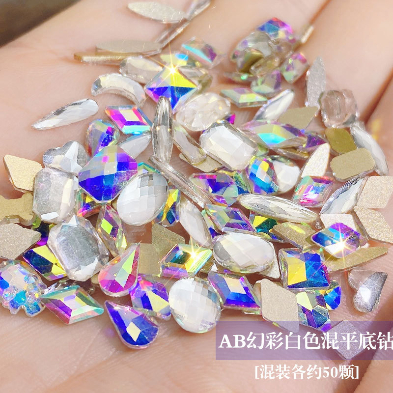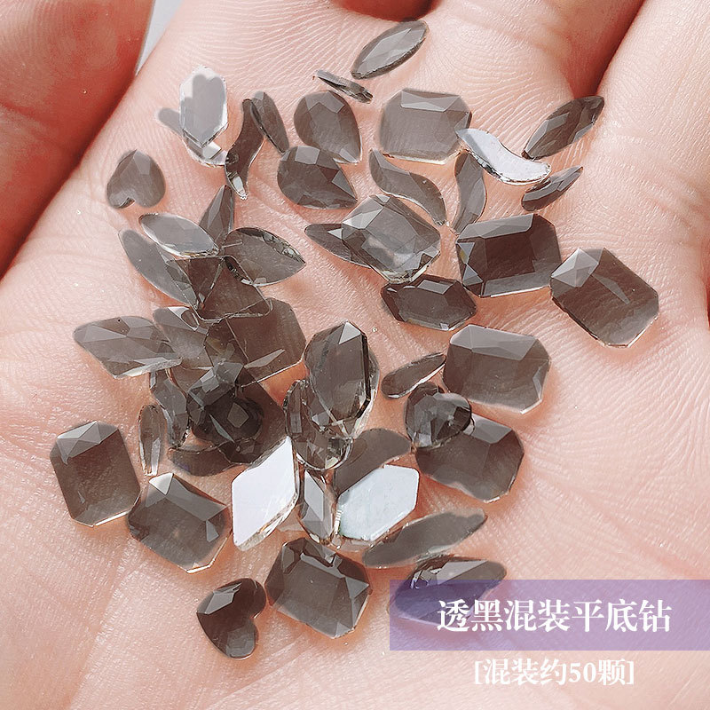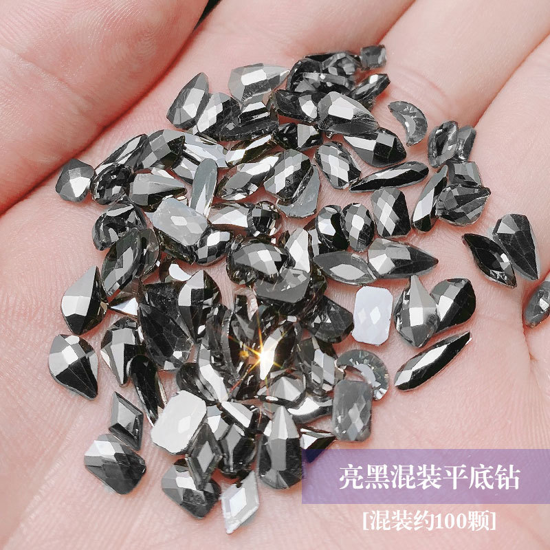 混装100颗美甲饰品极光魅影异形钻满钻贴纽约风暴亮黑美甲烫底钻