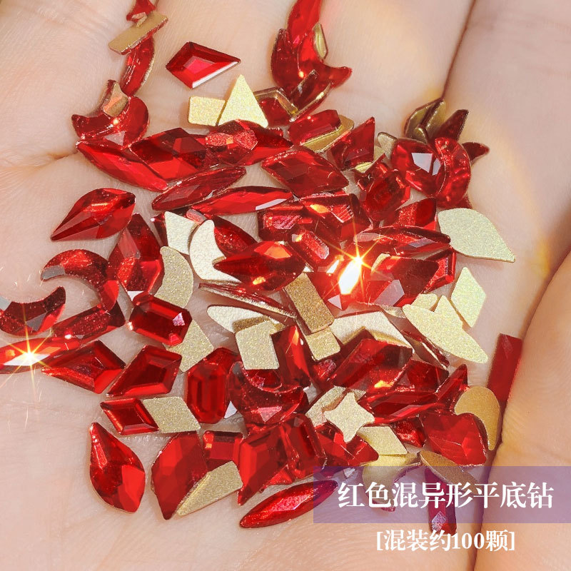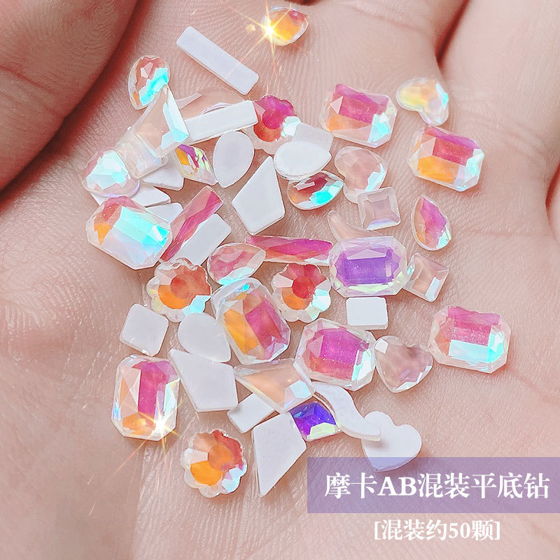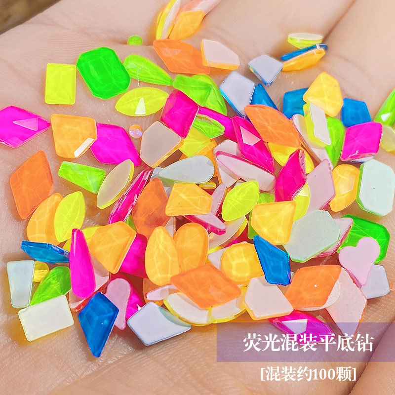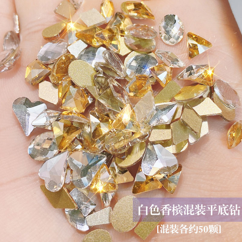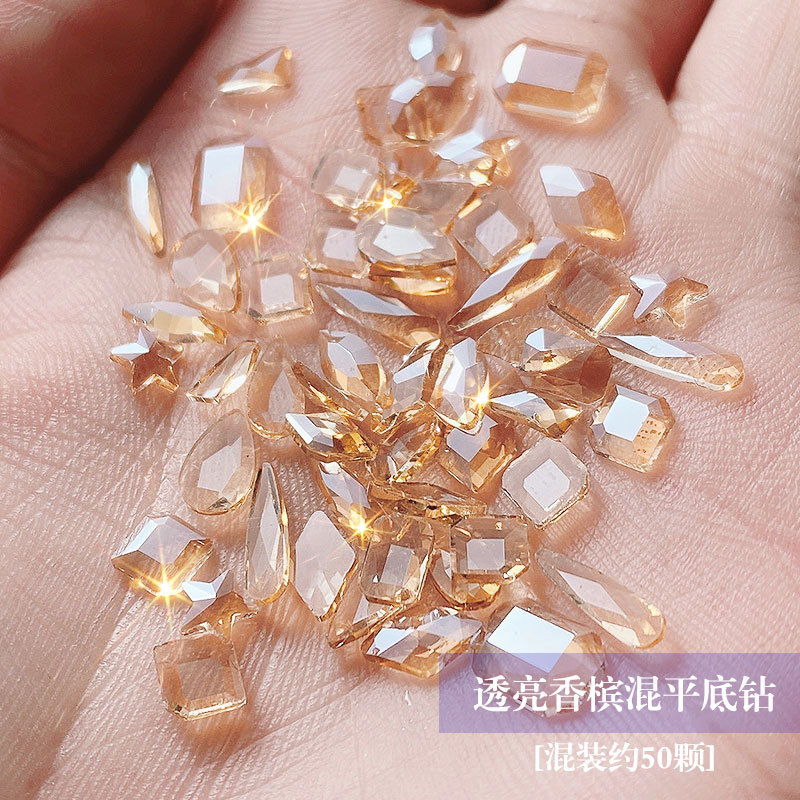 混装100颗美甲饰品极光魅影异形钻满钻贴纽约风暴亮黑美甲烫底钻