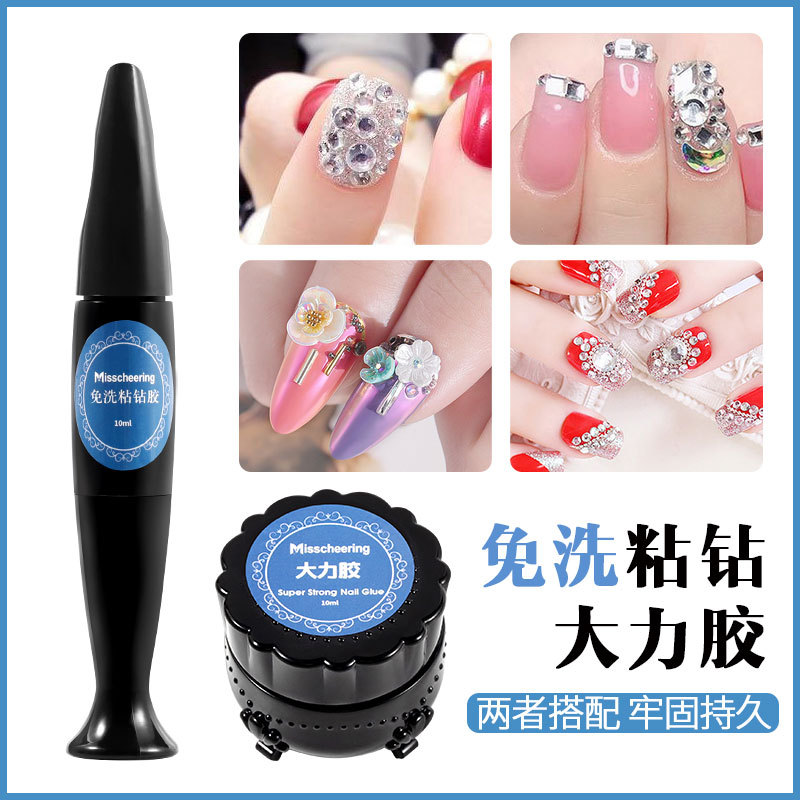 跨境新款美甲免洗大力胶加稠二代超强指甲钻饰品粘钻胶水牢固持久