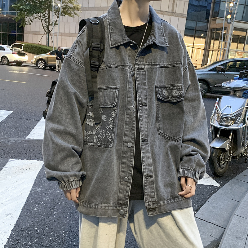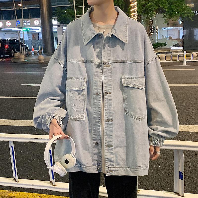牛仔外套男新款春季翻领休闲夹克男宽松休闲工装上衣男装港风