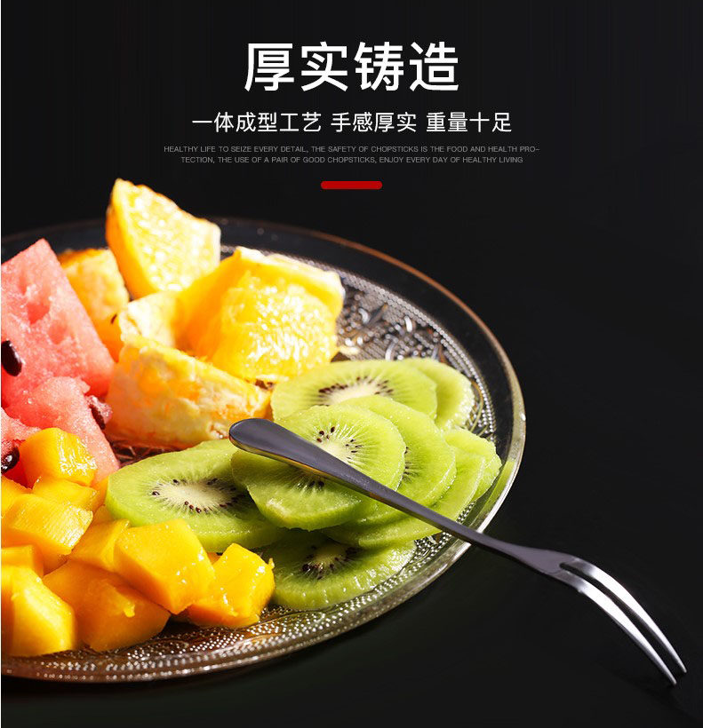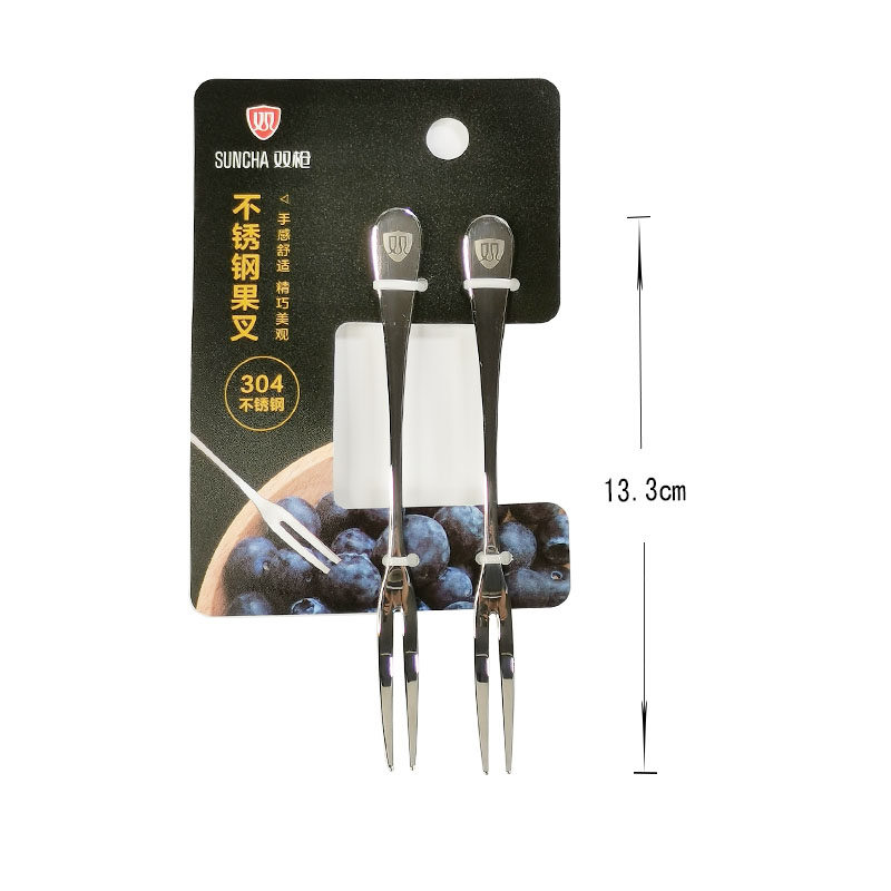 双枪304不锈钢长柄水果叉家用食品级餐具水果叉子2支装轻奢高级感