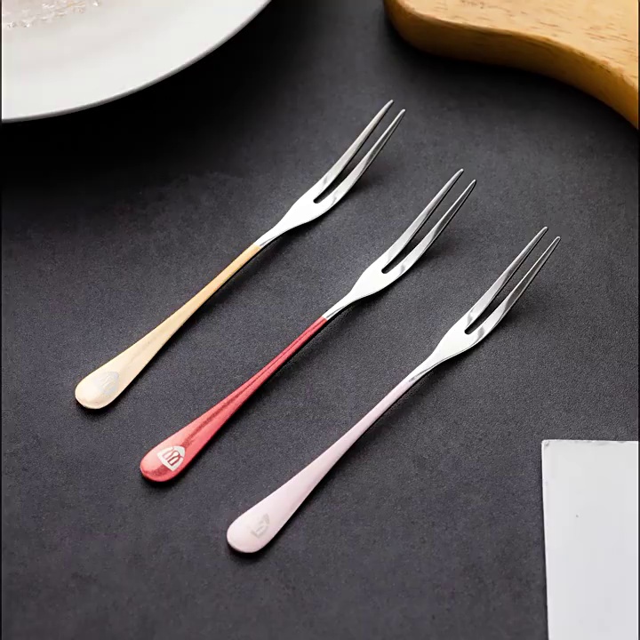 水果叉双枪不锈钢叉304水果叉健康分食果叉不锈钢水果叉