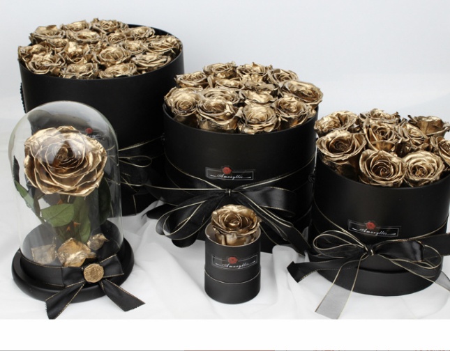 永生花保鲜花金色玫瑰抱抱桶外贸