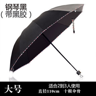 太阳伞厂家批发十骨折叠伞晴雨两用大号双人加固黑胶防晒伞遮阳伞