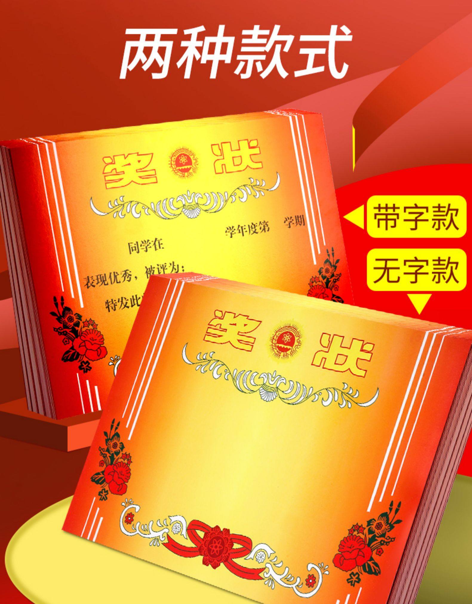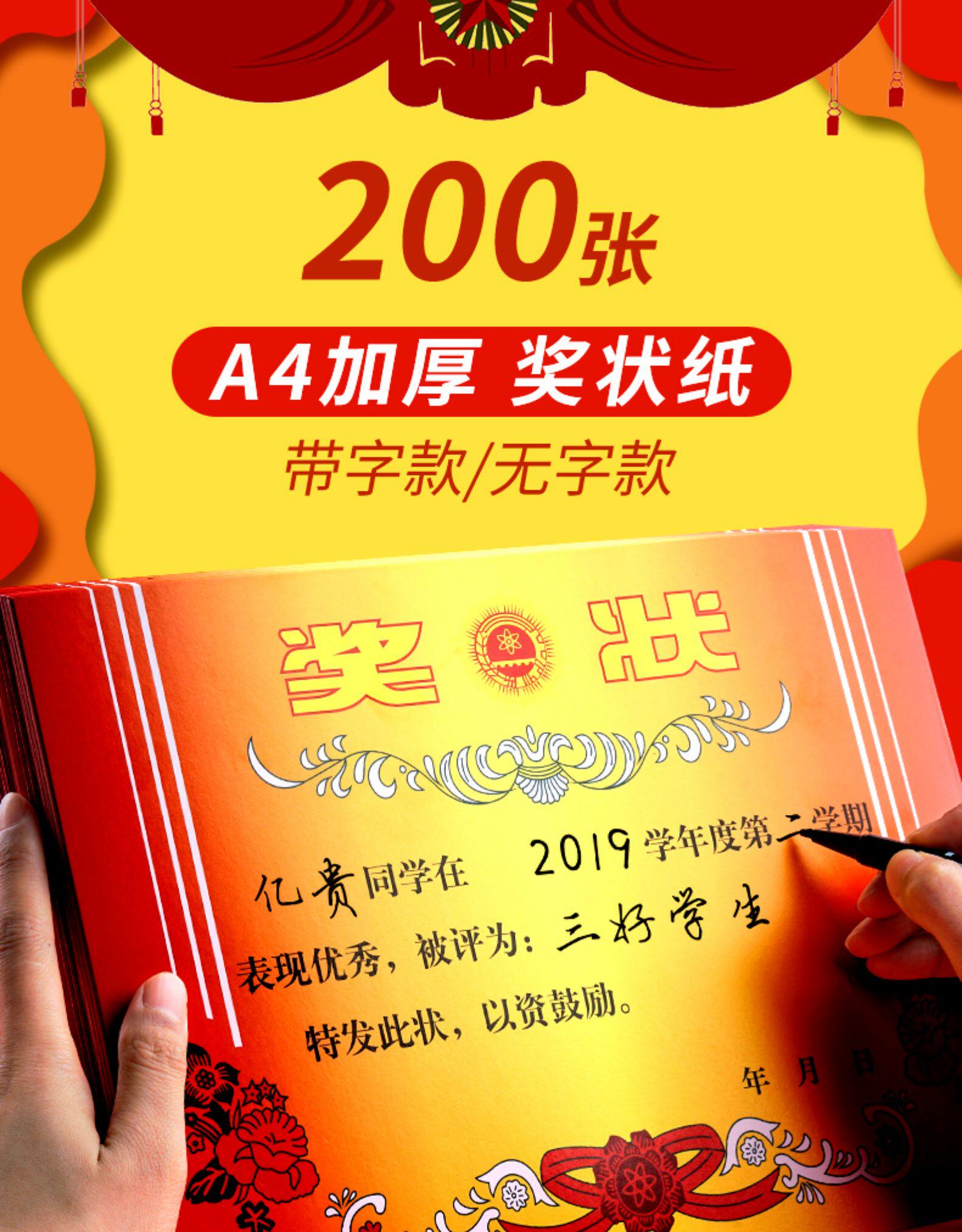 200张奖状纸a4可打印空白定制初中生荣誉证书创意三好学生奖状