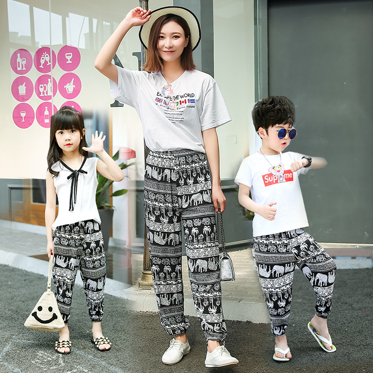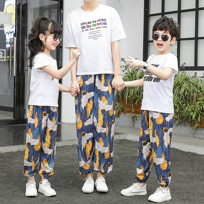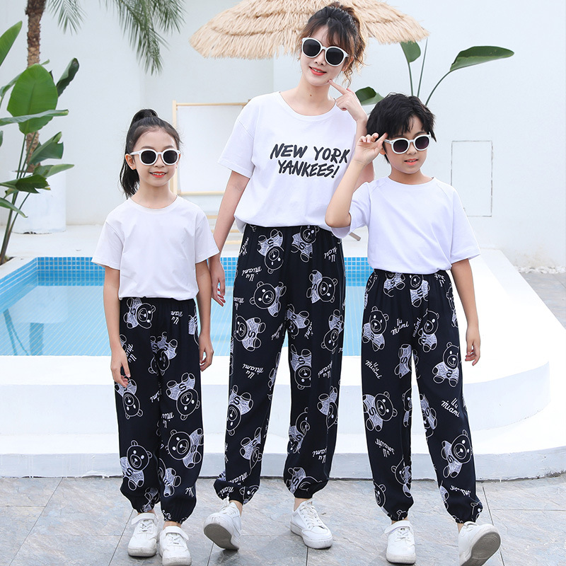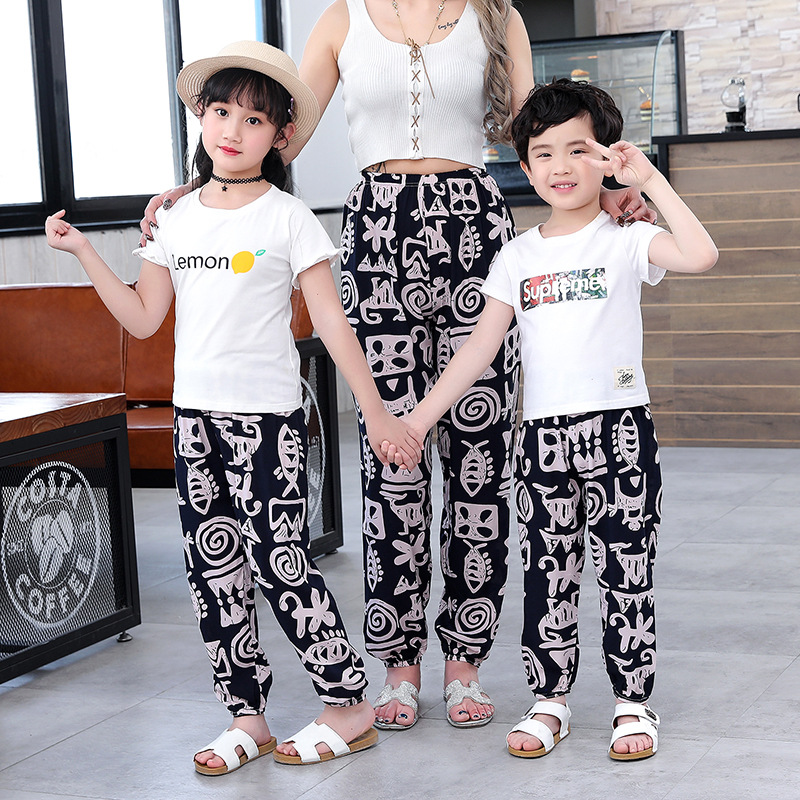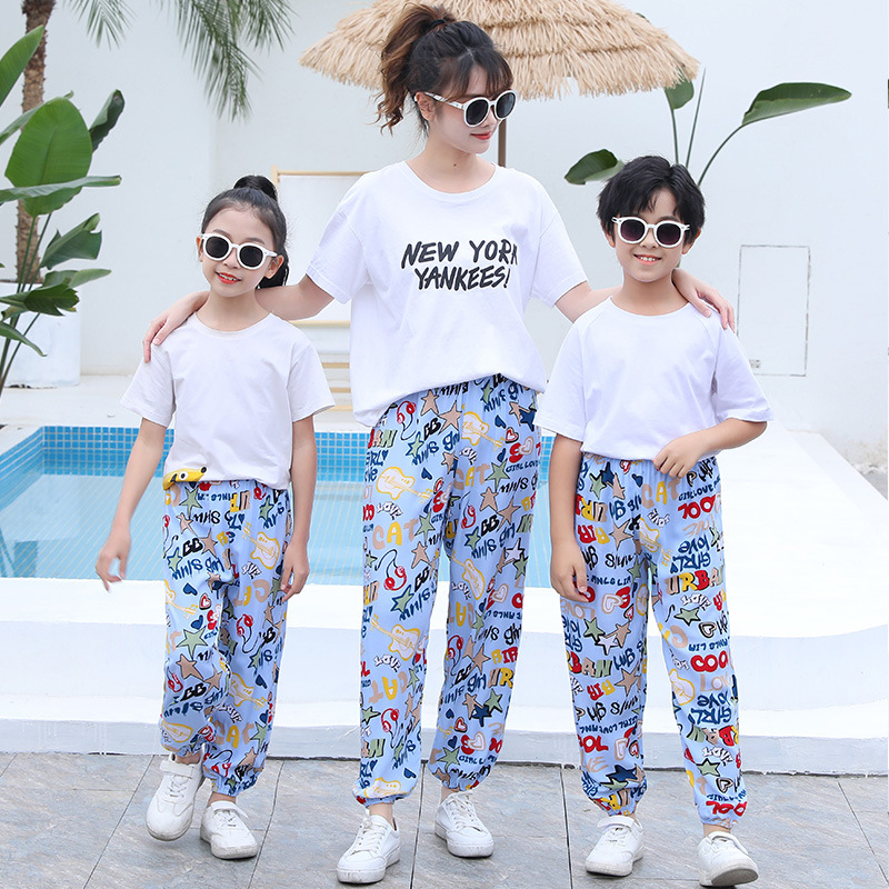 夏季儿童防蚊裤薄款春秋款男女童宝宝长裤成人女士亲子防蚊裤绵绸