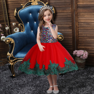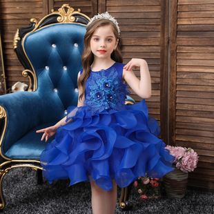 亚马逊公主裙女童连衣裙儿童礼服网纱girl dress中大童钢琴表演服