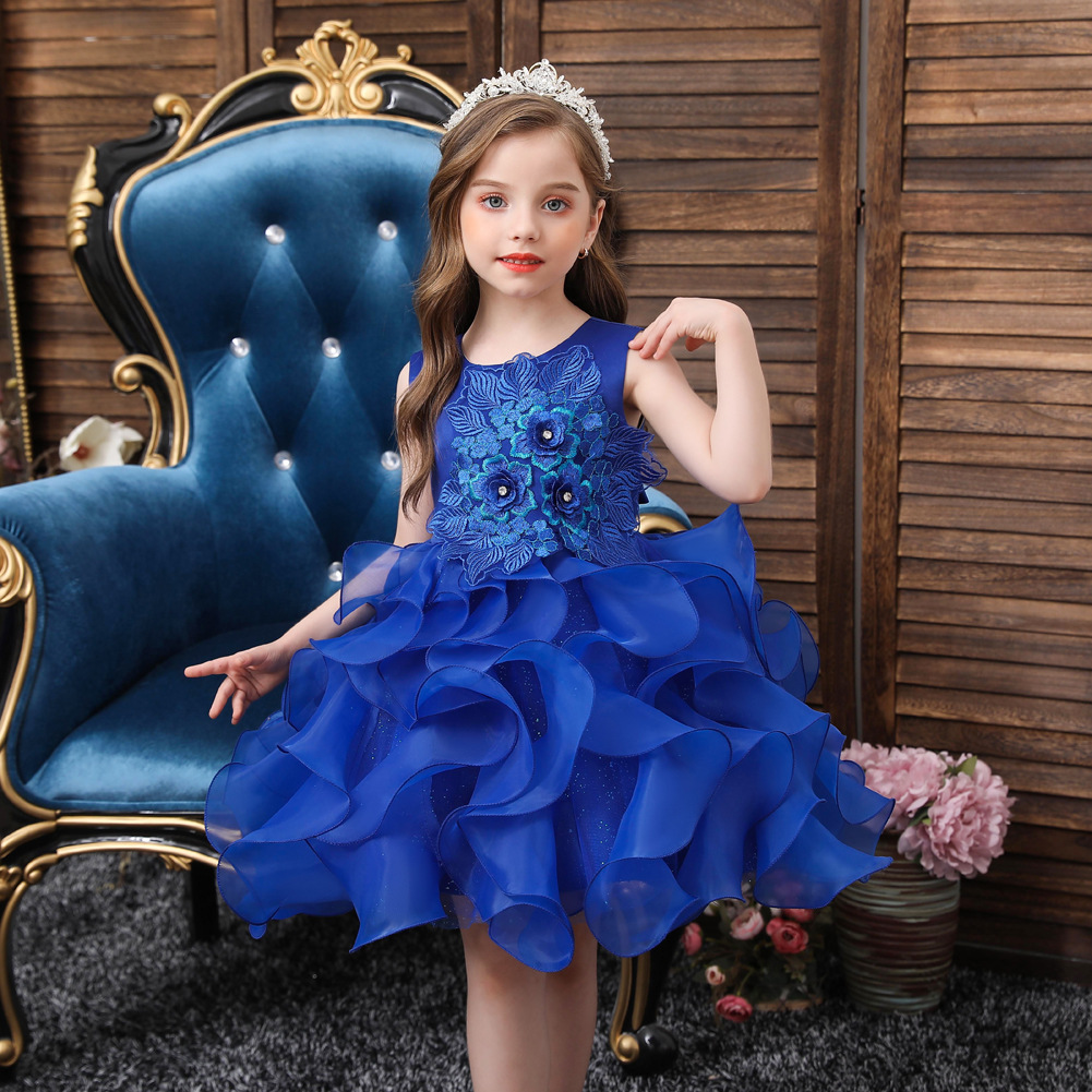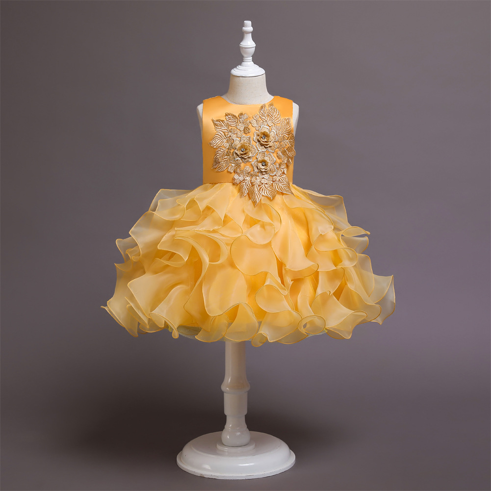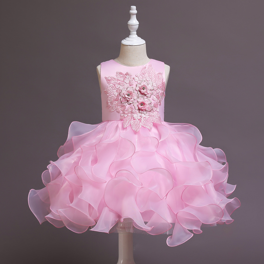 亚马逊款公主连衣裙欧根纱蛋糕裙绣花无袖童裙批发