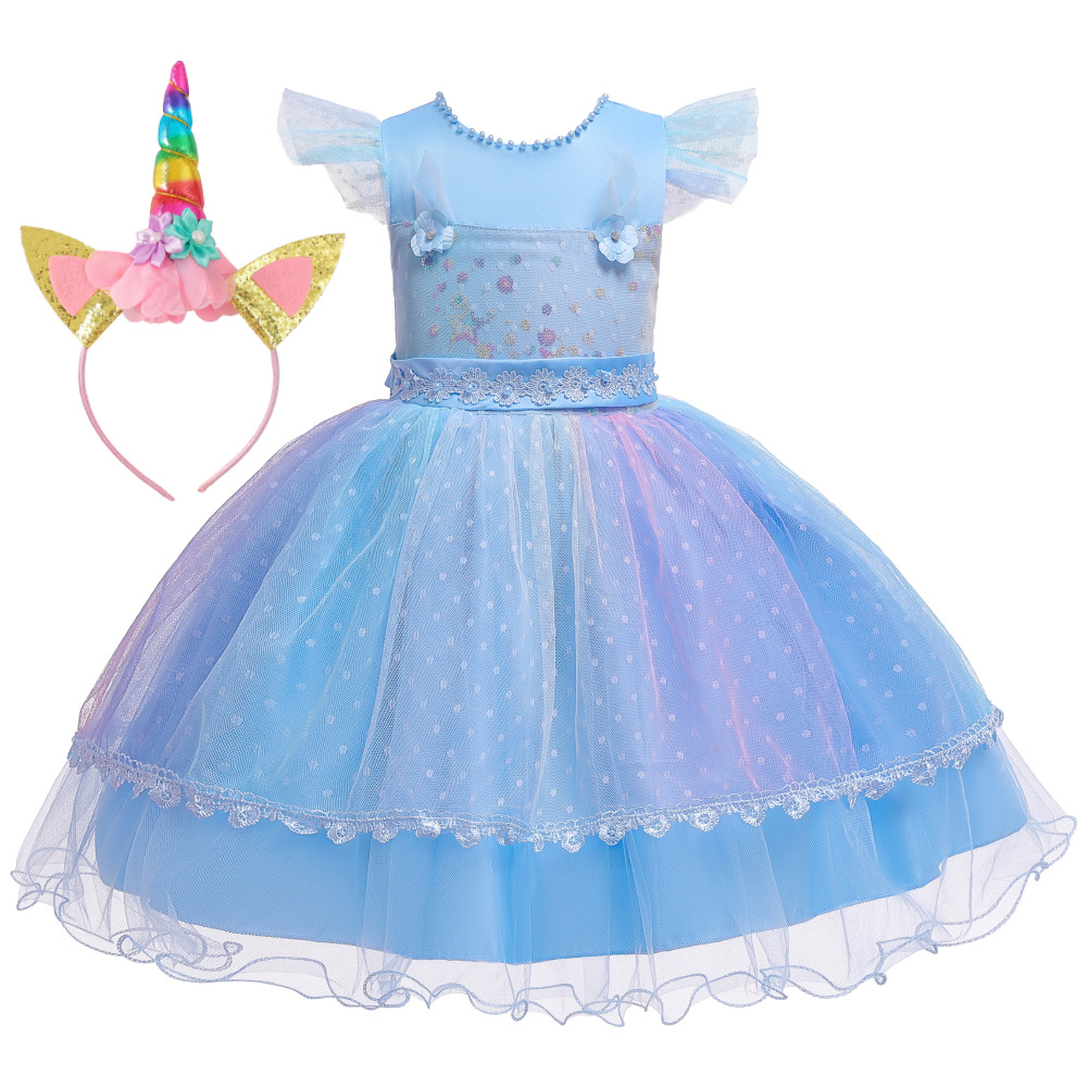 热卖款蓬蓬裙渐变色连衣裙花童礼服裙+独角兽发箍
