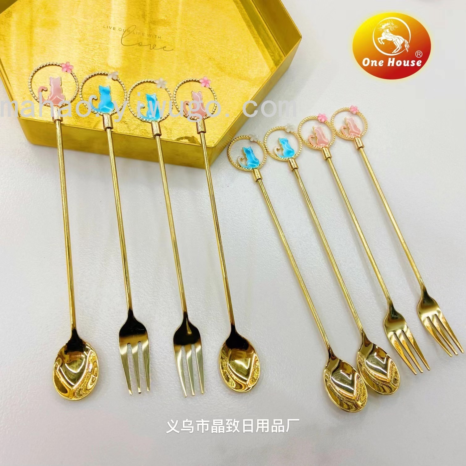 一家原创不锈钢咖啡搅拌勺 水果叉