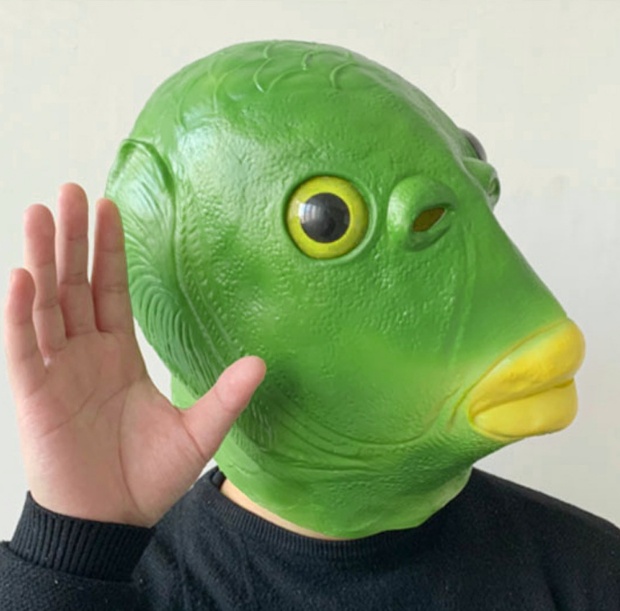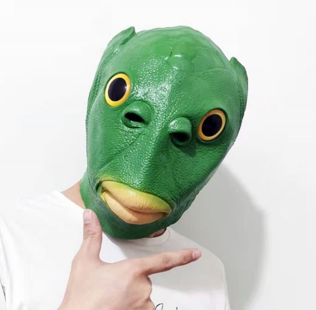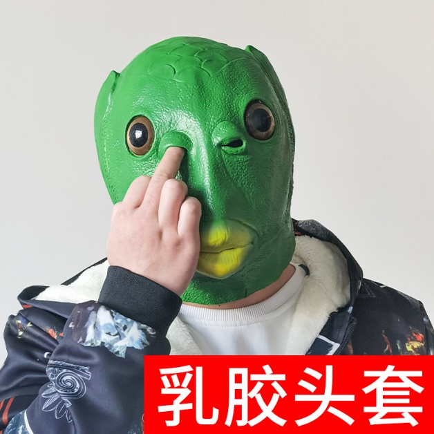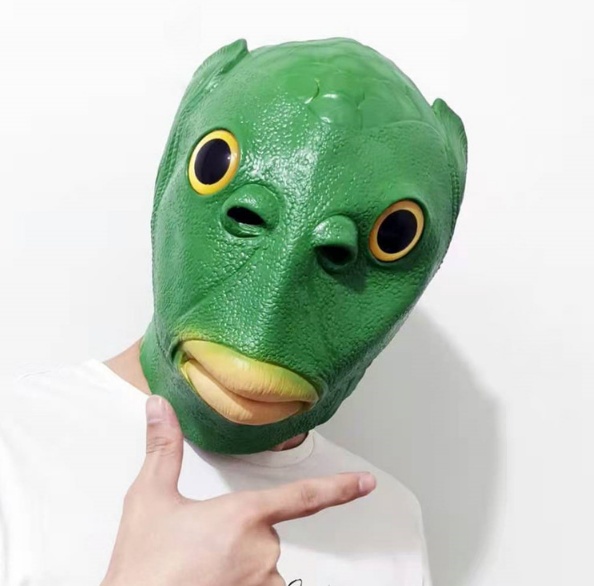 网红绿鱼怪面具整蛊搞怪人鱼头套外贸