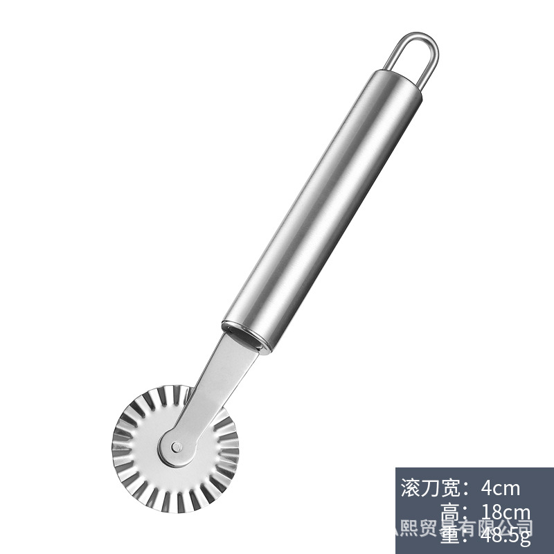 不锈钢披萨滚刀花边轮刀pizza双轮切刀波浪纹单双头开刃介饼刀