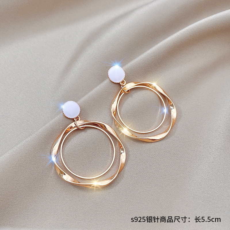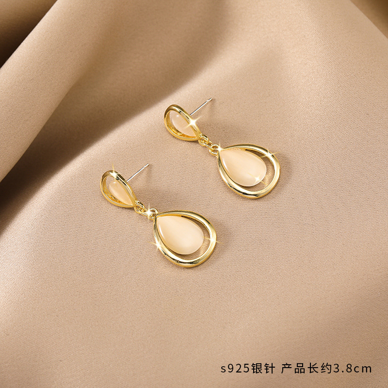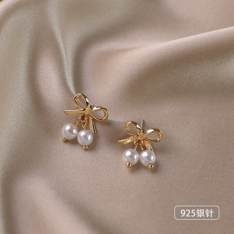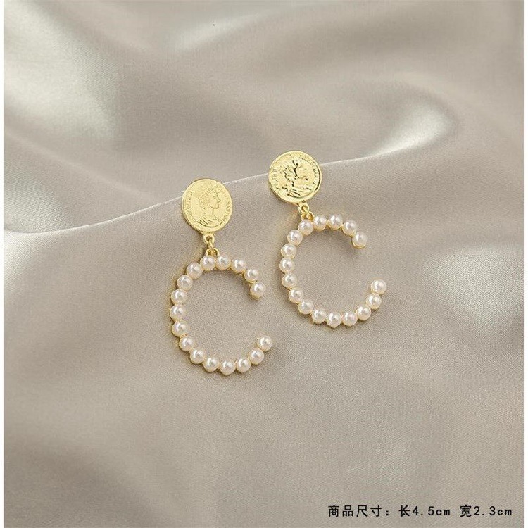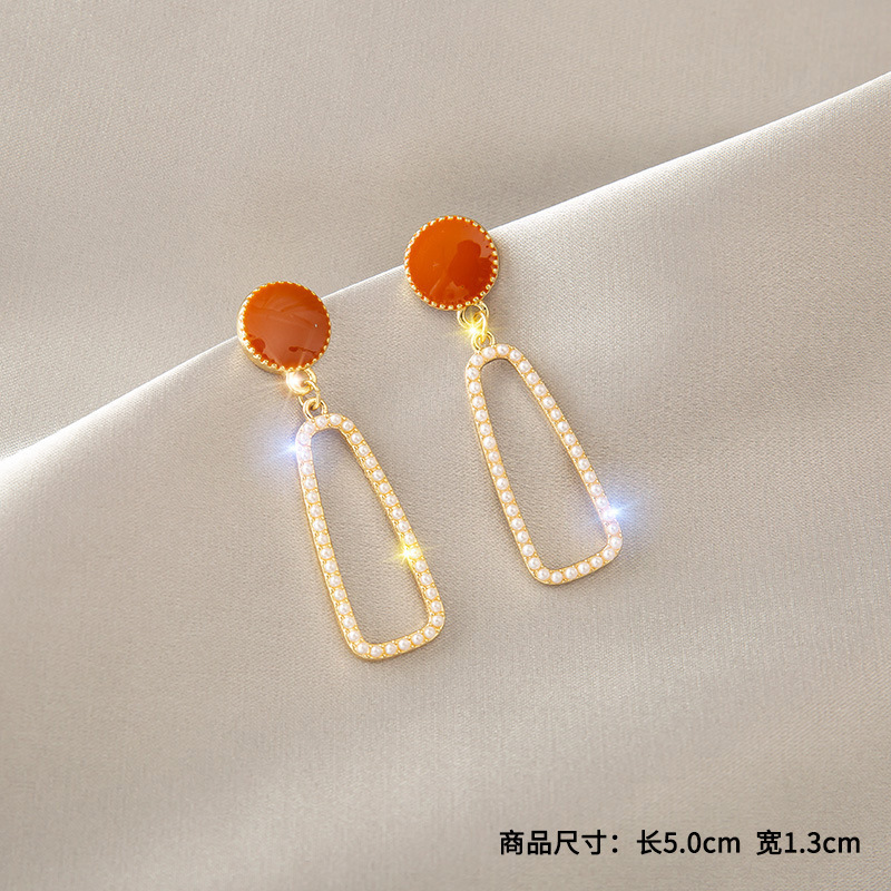 925银针几何珍珠耳环女 时尚耳钉流苏高级感耳坠气质复古耳饰批发