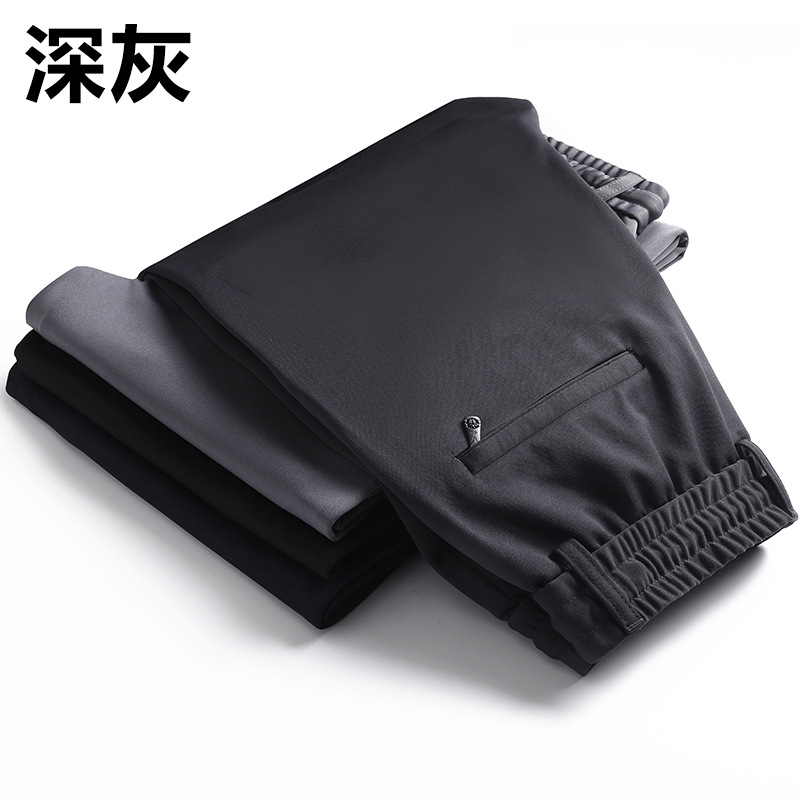 中年男士秋季加厚松紧休闲裤男中老年宽松直筒高腰爸爸长裤子