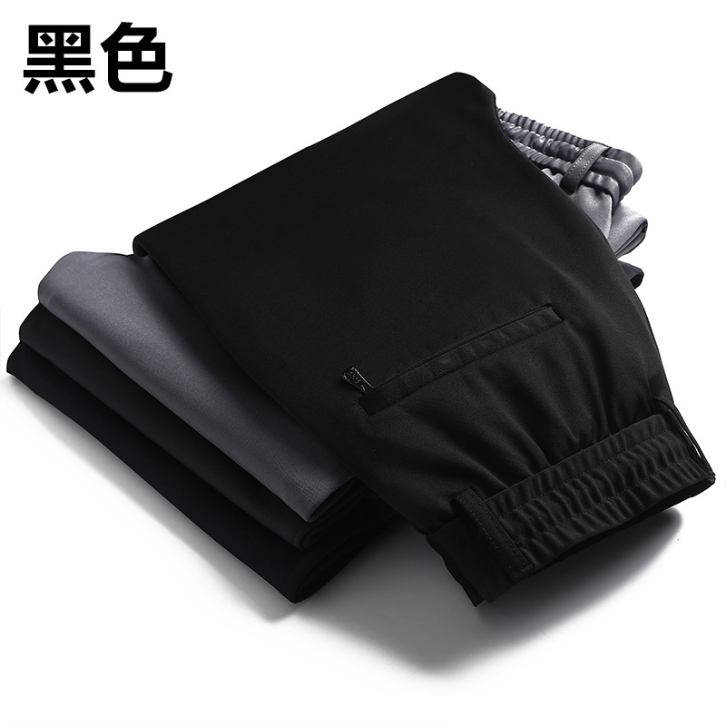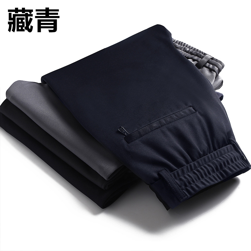 中年男士秋季加厚松紧休闲裤男中老年宽松直筒高腰爸爸长裤子