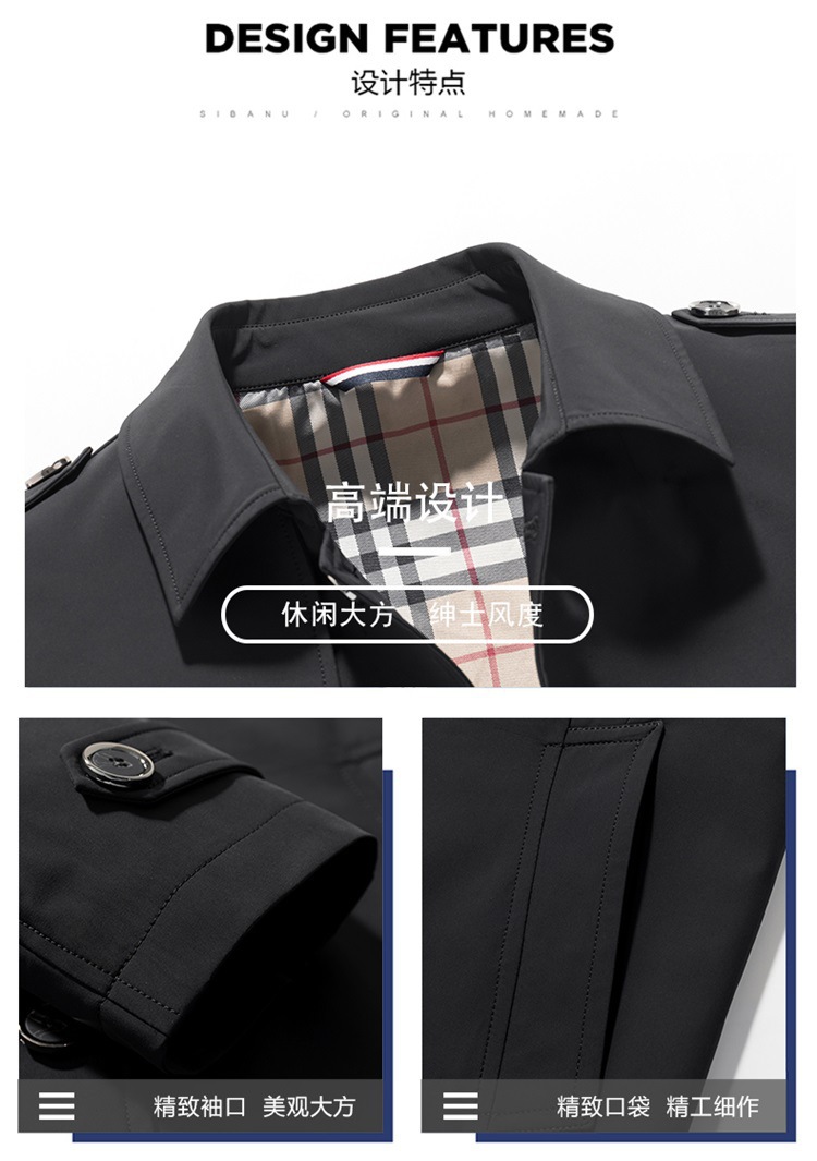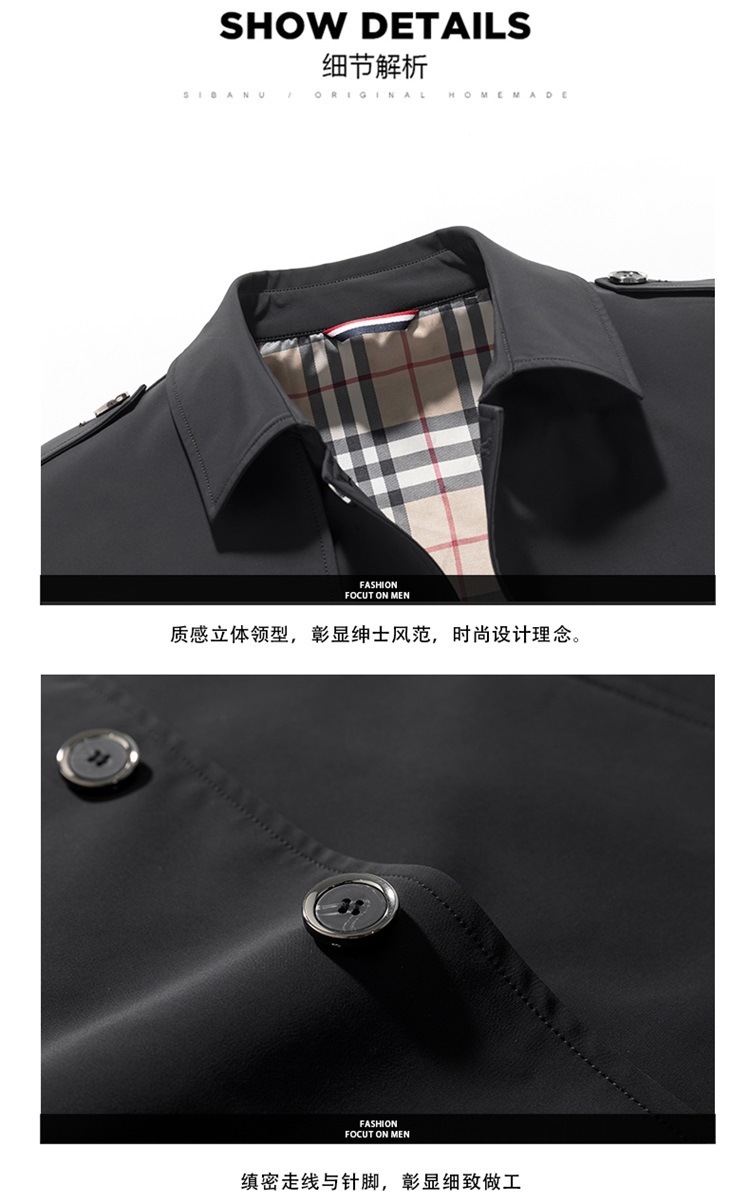 2022秋季新品男士休闲风衣外套中青年潮流时尚简约风衣外套男上衣