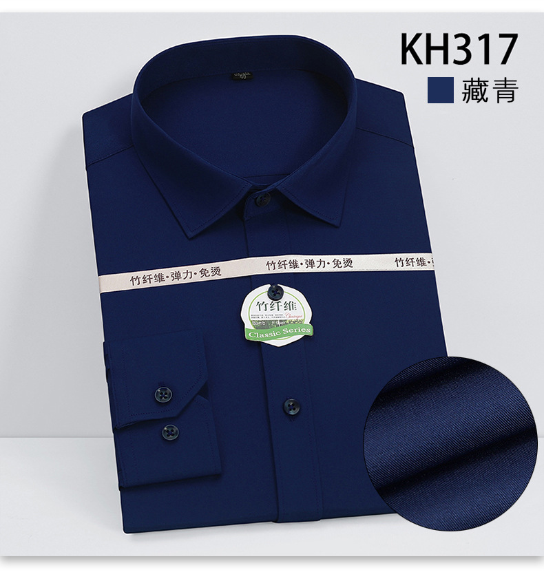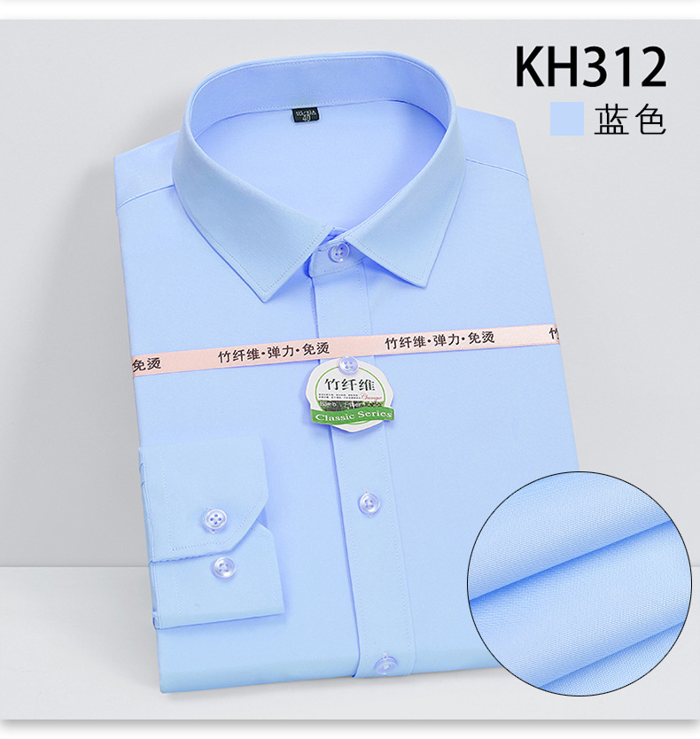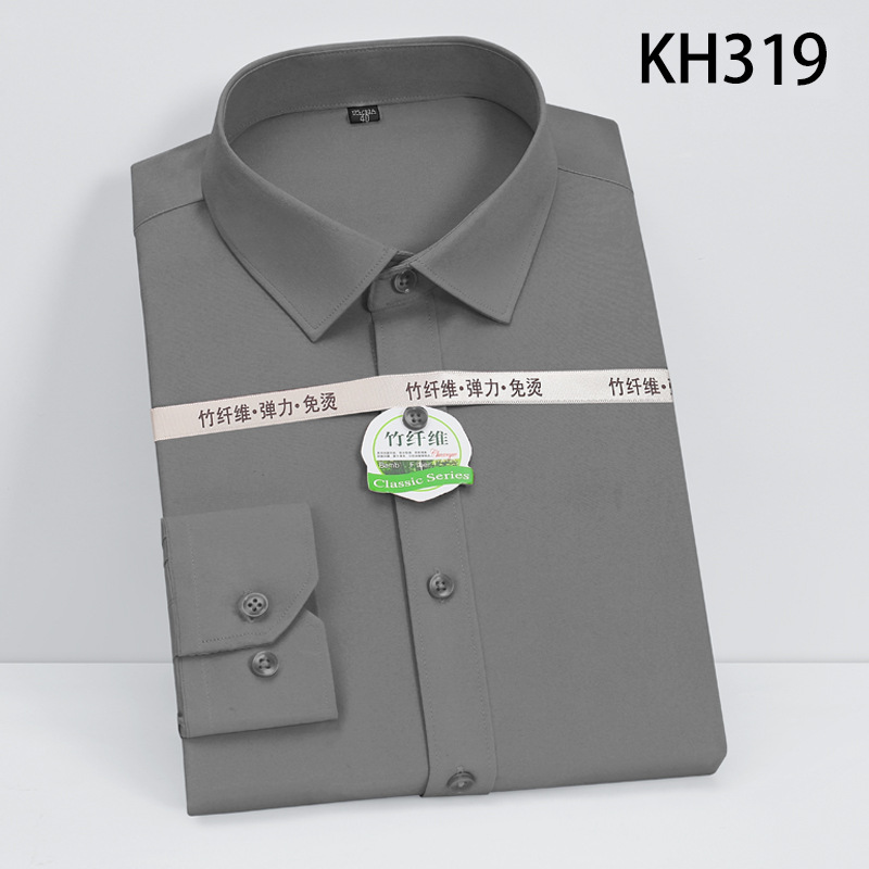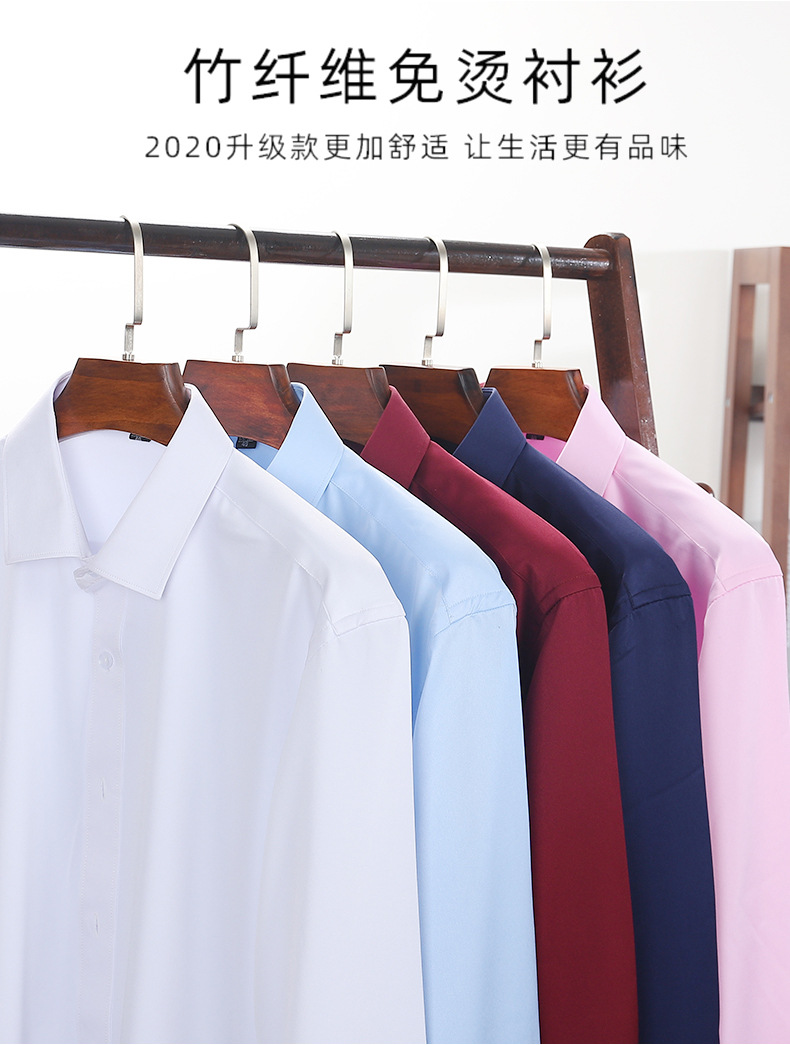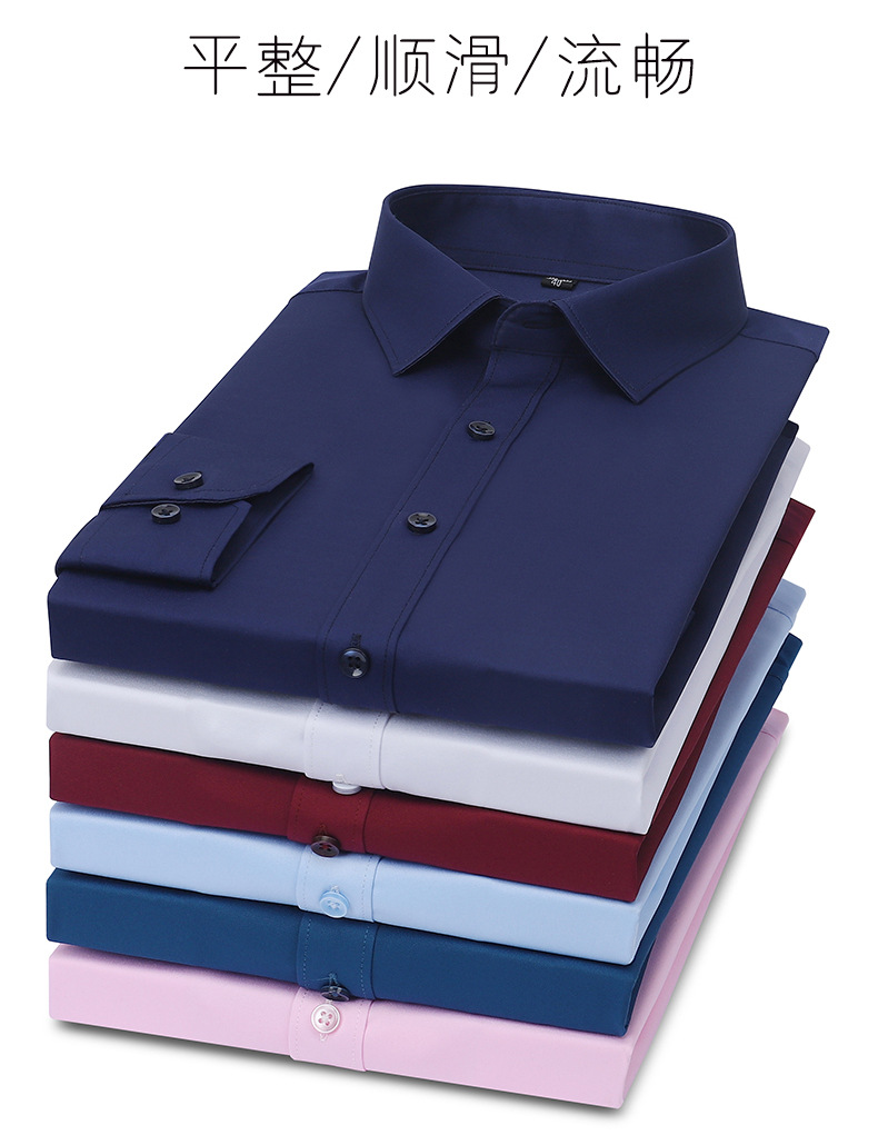 新款竹纤维男士长袖弹力衬衫商务休闲纯色正装男衬衣免烫透气