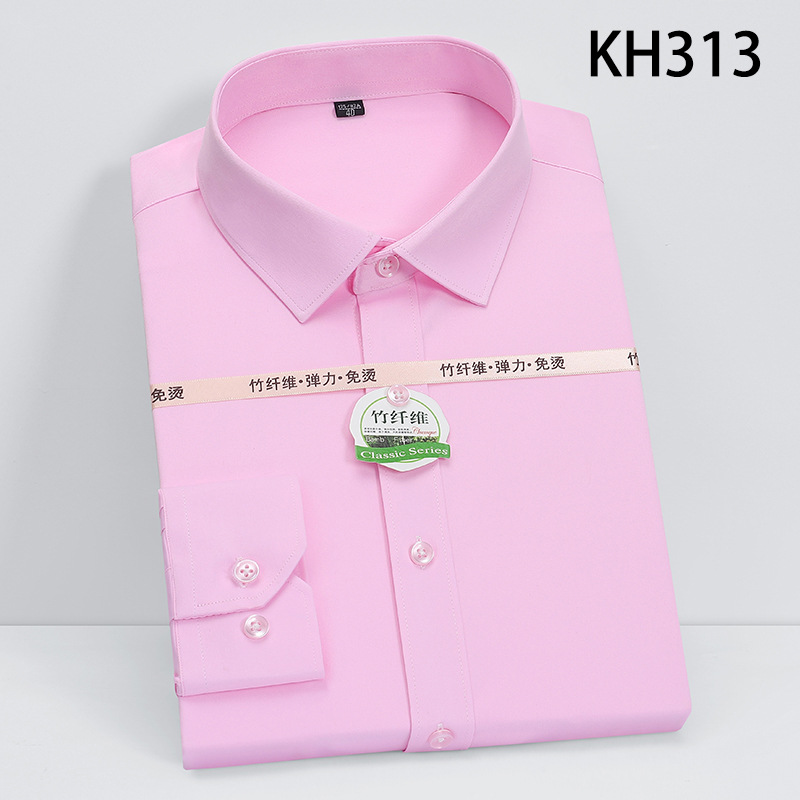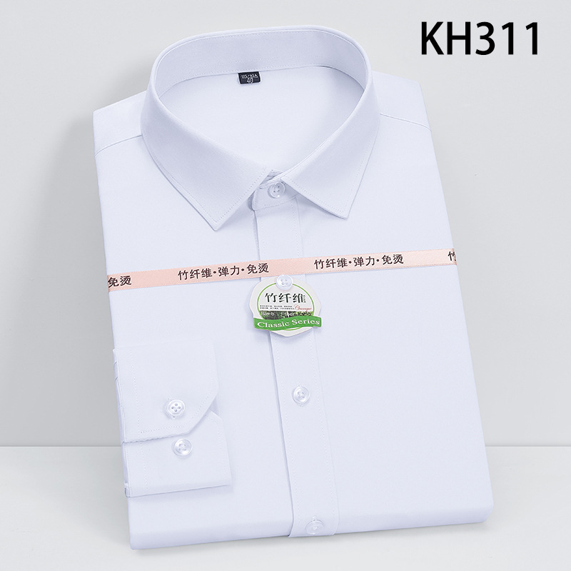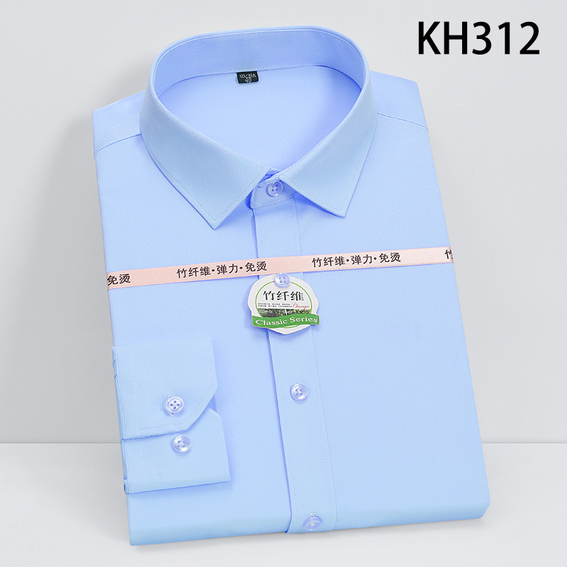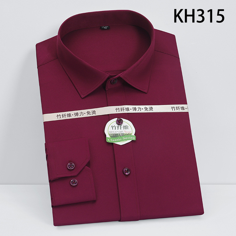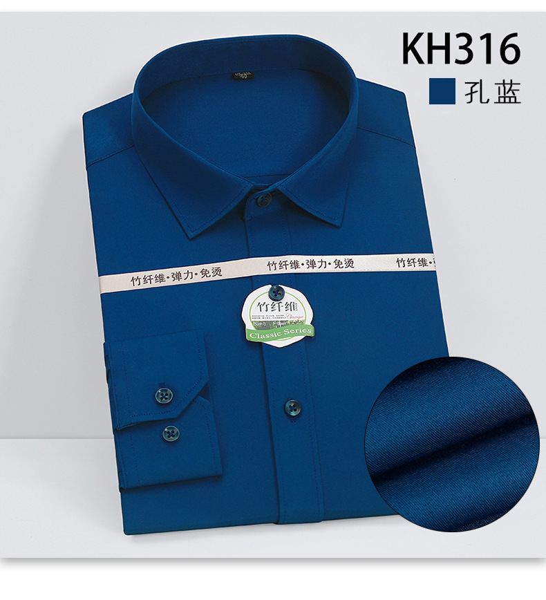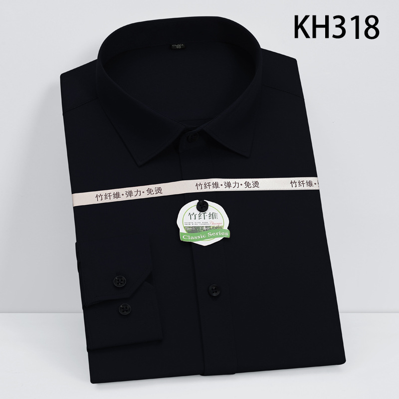 新款竹纤维男士长袖弹力衬衫商务休闲纯色正装男衬衣免烫透气