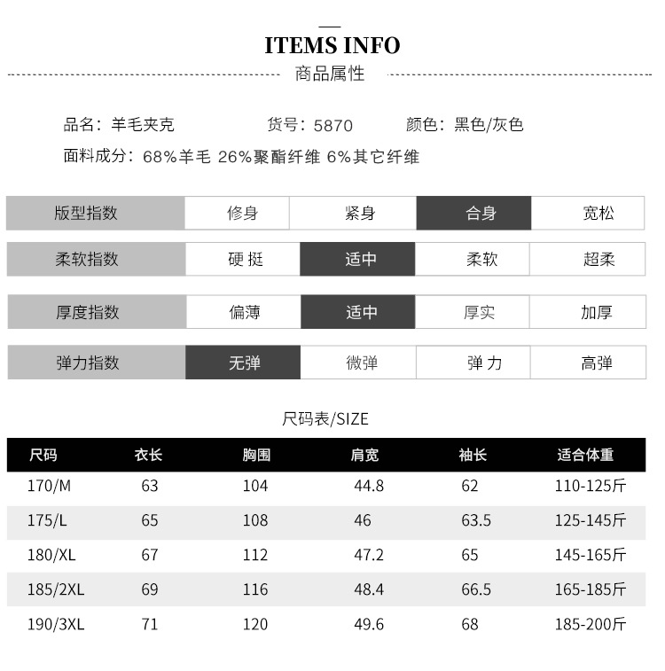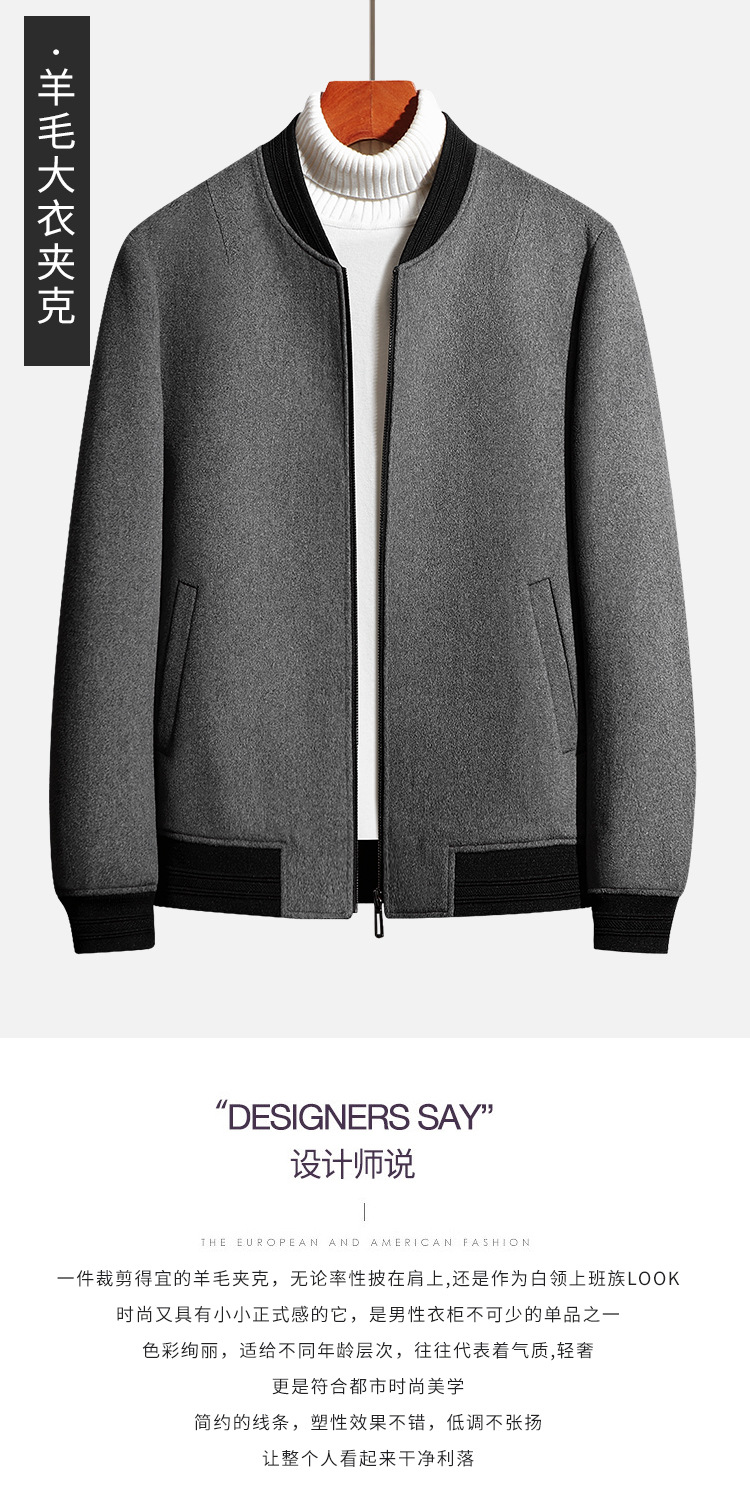 羊毛夹克男新款羊毛呢子外套商务修身上衣休闲 羊毛夹克