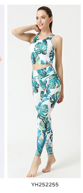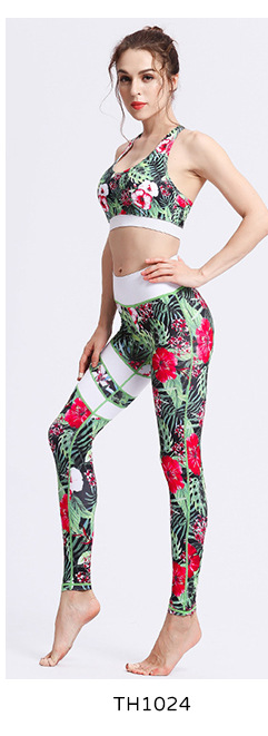新款印花瑜伽九分裤户外运动跑步速干健身裤紧身弹力瑜伽裤女