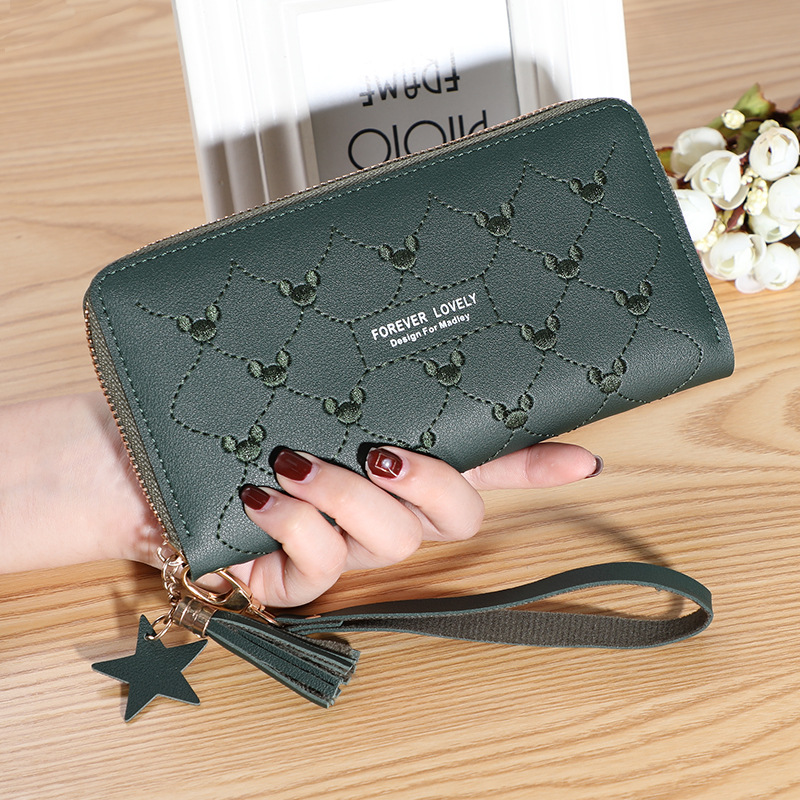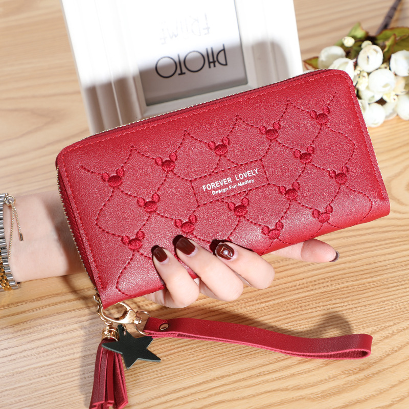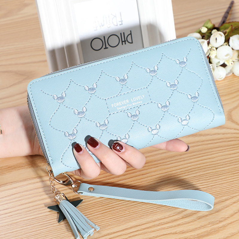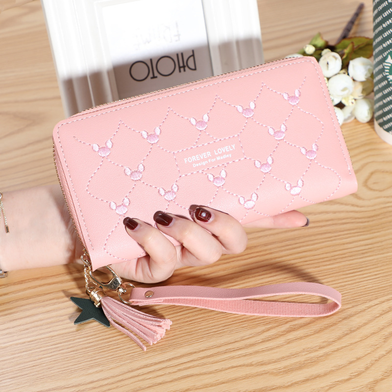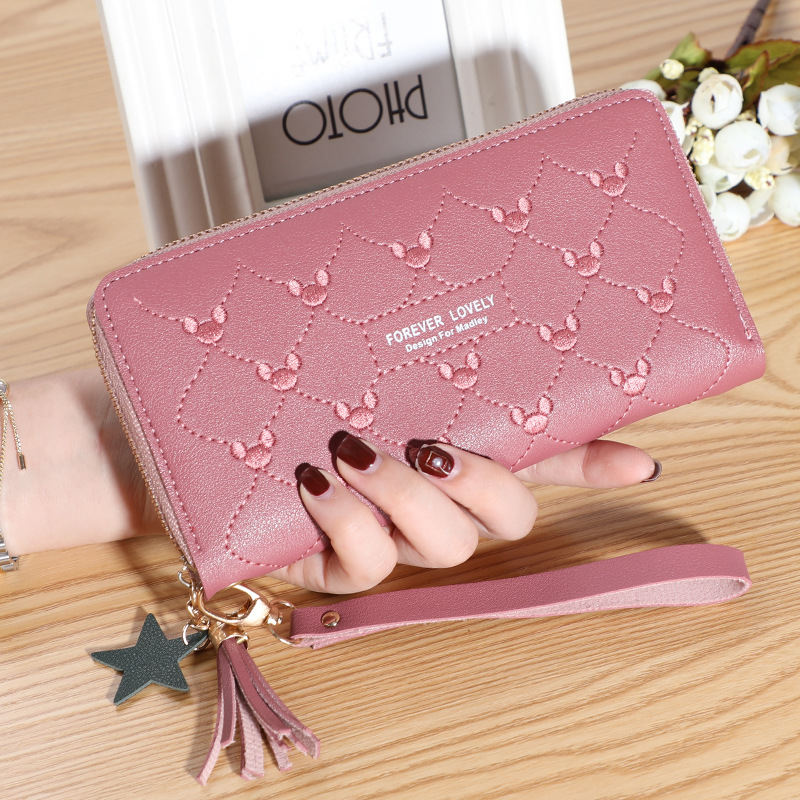 2022新款钱包长款女士拉链钱夹 女韩版车缝线流苏百搭卡包手机包