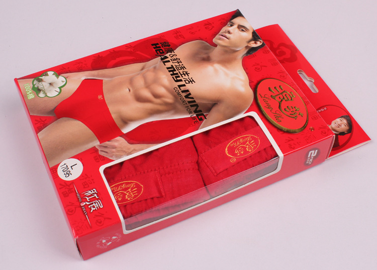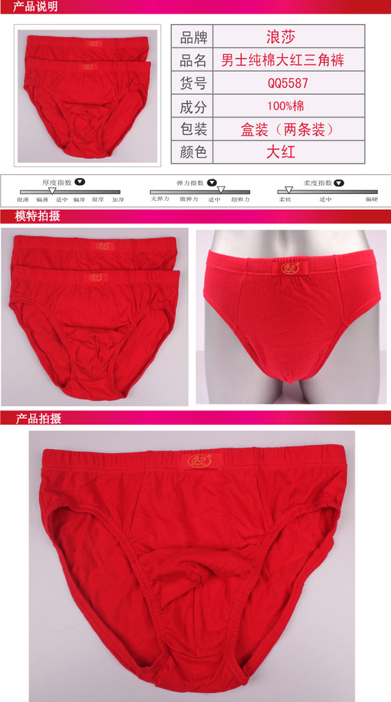 浪莎男士大红内裤 青年纯棉红色三角裤2条盒装本命年鸿运裤男代发