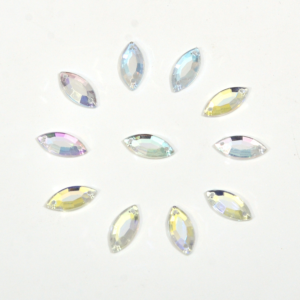 台湾亚克力平底平切面马眼双孔手缝钻 服装鞋帽装饰点缀闪亮钻饰