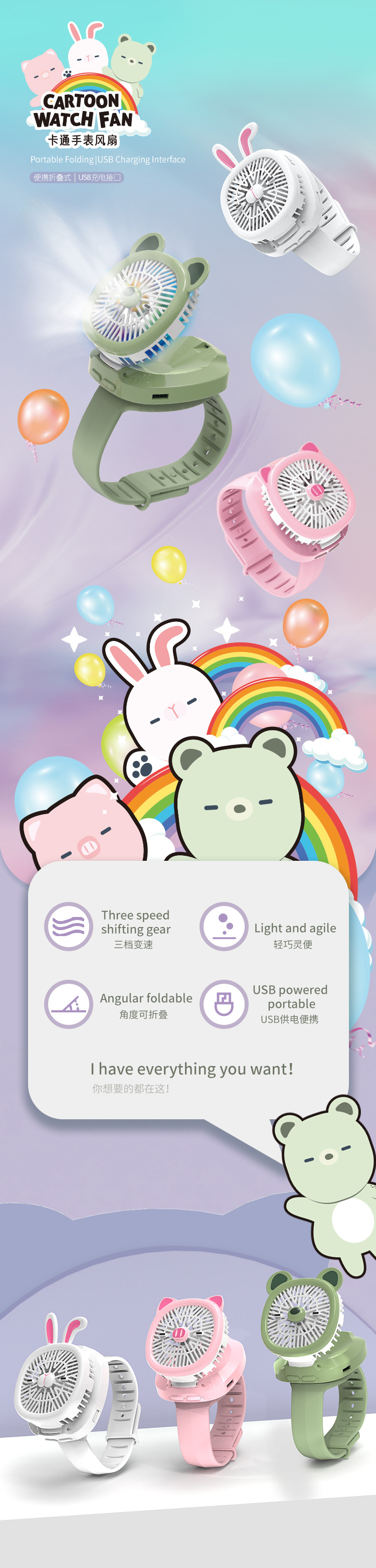创意手表小风扇便携式小型usb充电手腕学生儿童可爱卡通桌面宿舍