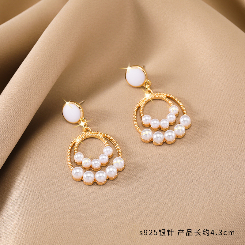 925银针珍珠耳环女 时尚耳钉流苏高级感耳坠气质复古耳饰批发