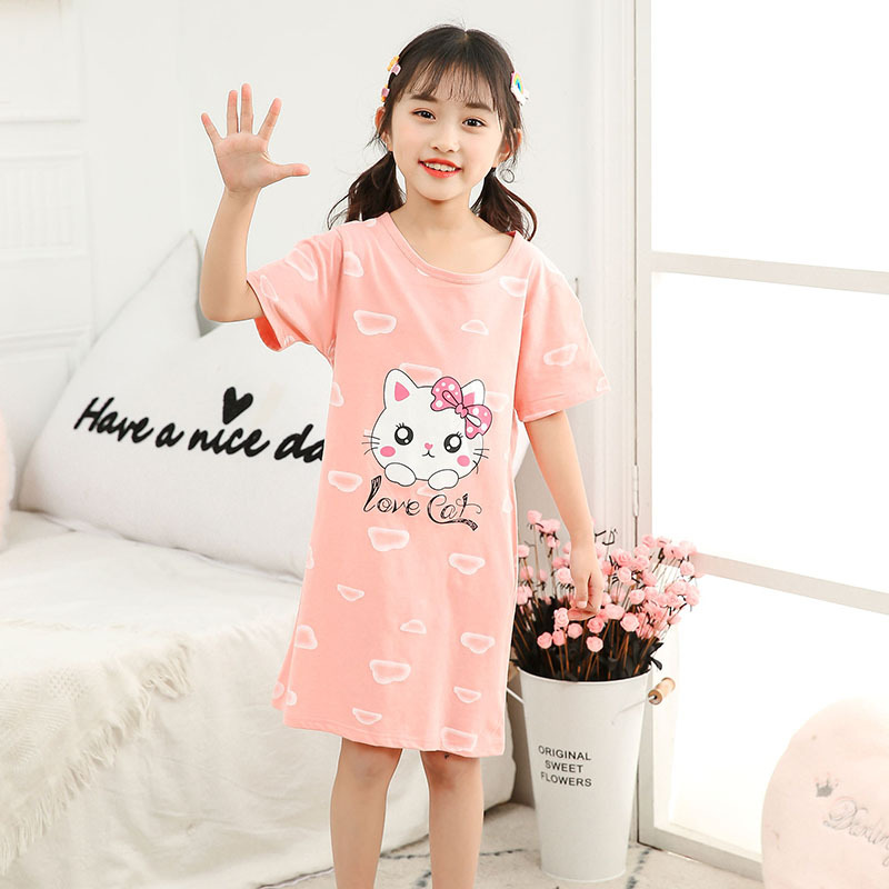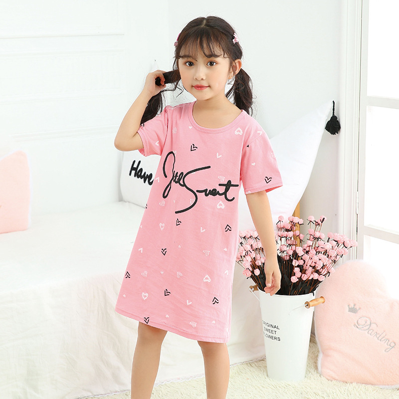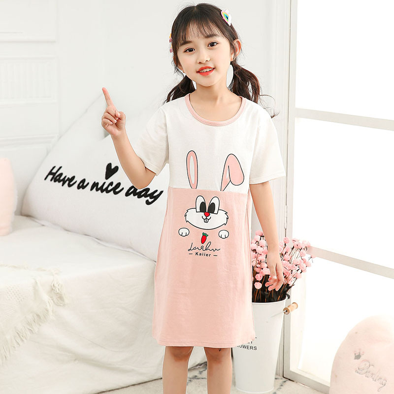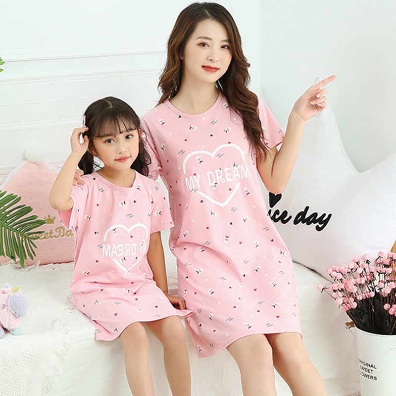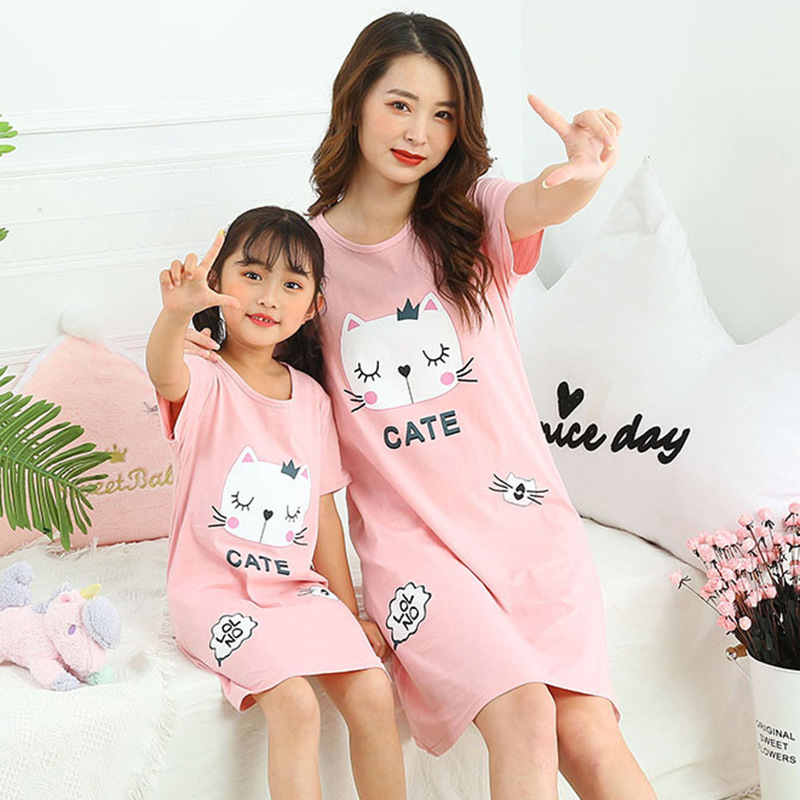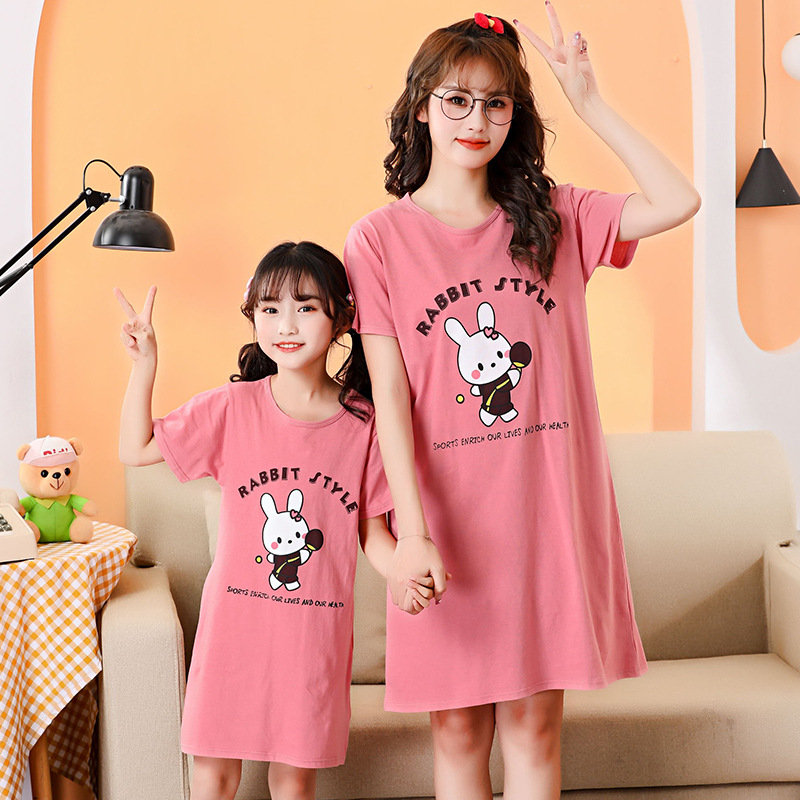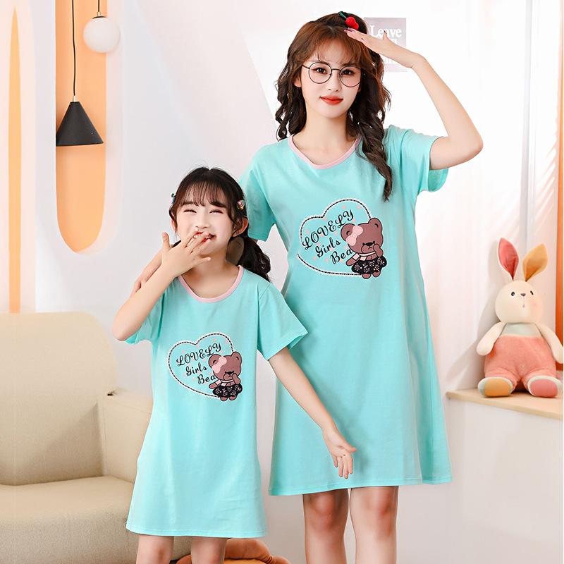 儿童睡裙夏季母女亲子卡通短袖连衣裙棉质休闲运动家居服厂家直批