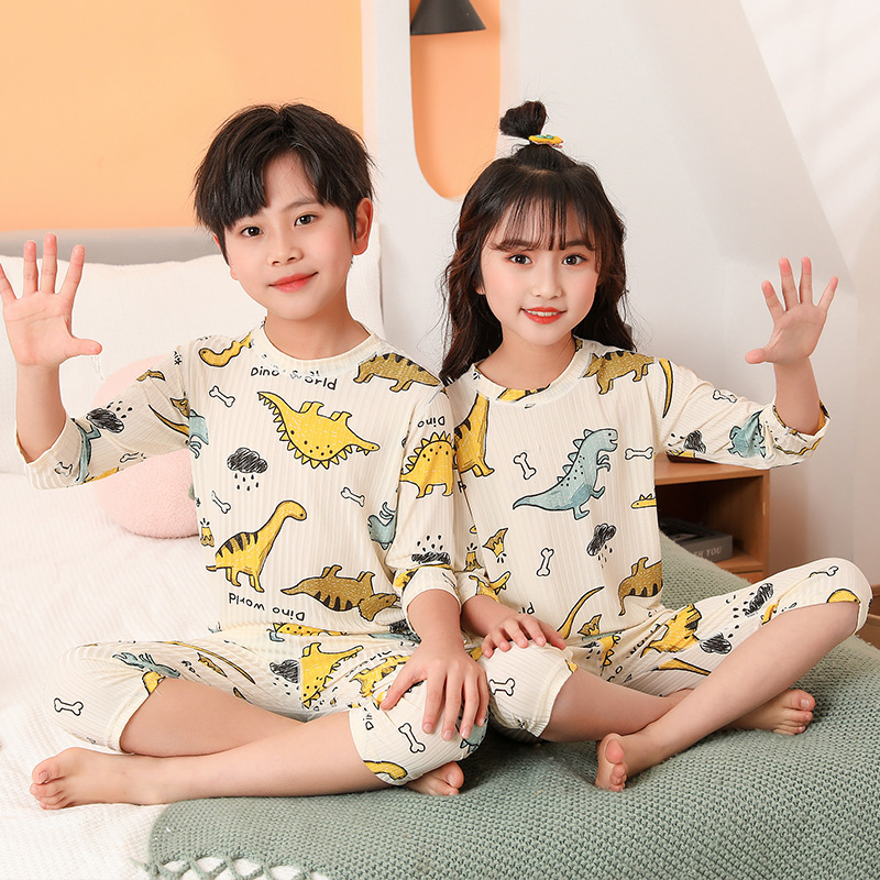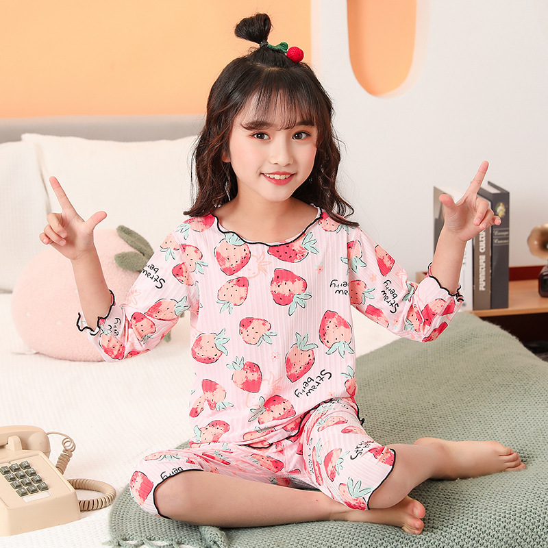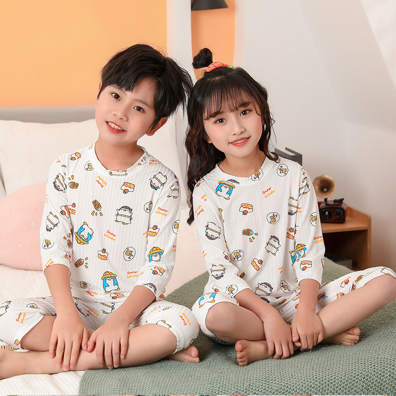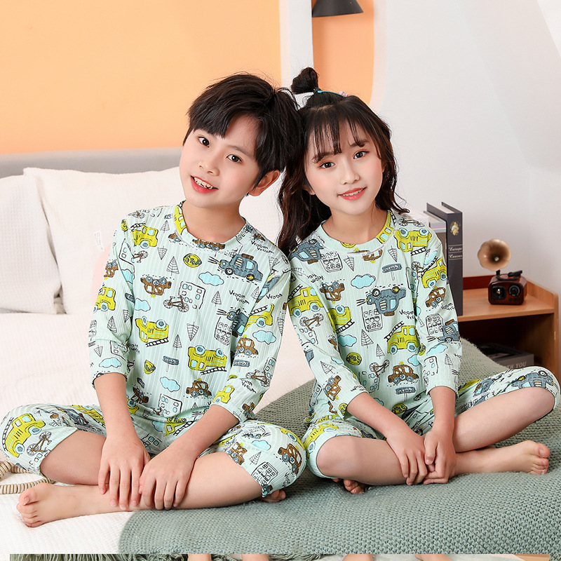 韩版儿童家居服套装男女童睡衣夏季中小童七分袖套装薄款空调服