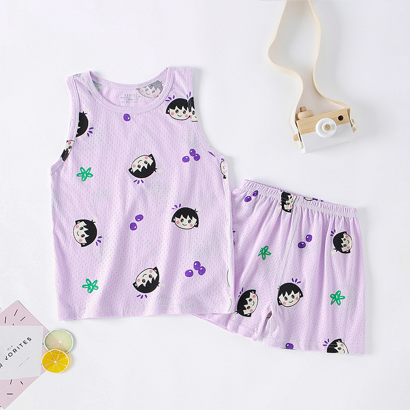 新款儿童背心套装卡通薄款呼吸棉运动两件套男童女童套装一件代发
