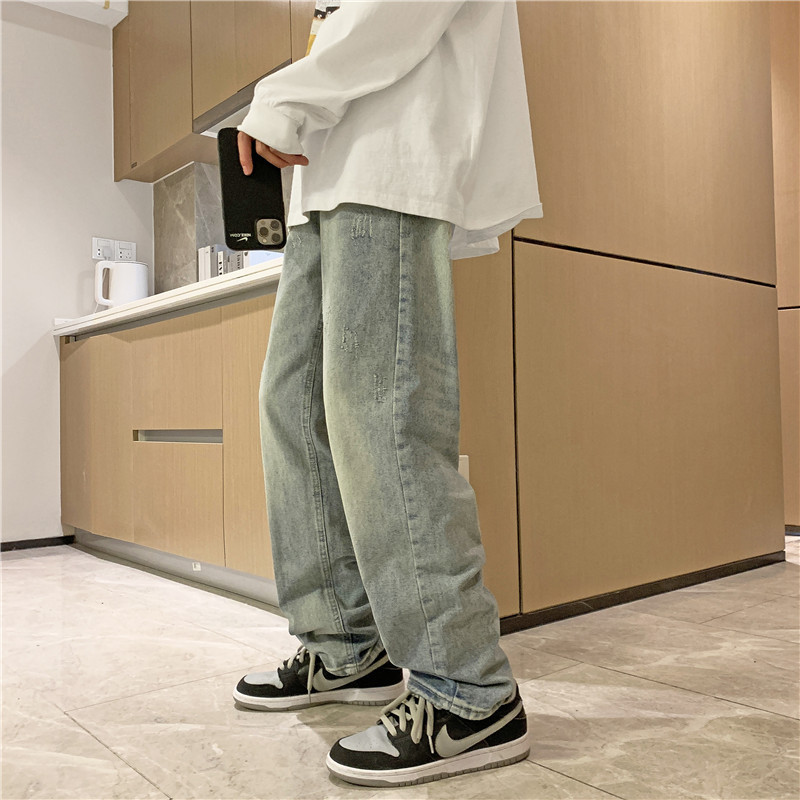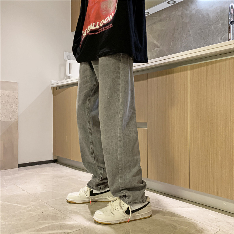 牛仔裤直筒ins宽松百搭潮牌阔腿港风拖地裤设计感裤子男士垂坠感