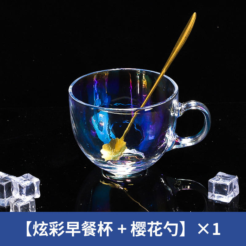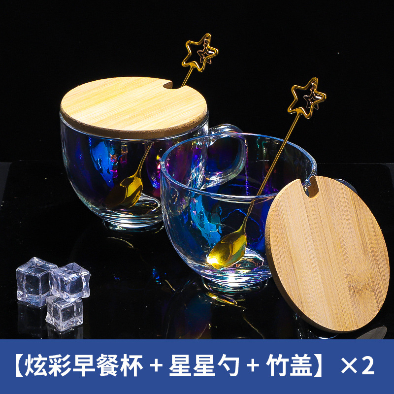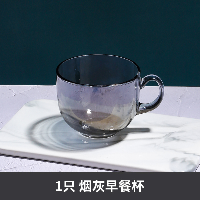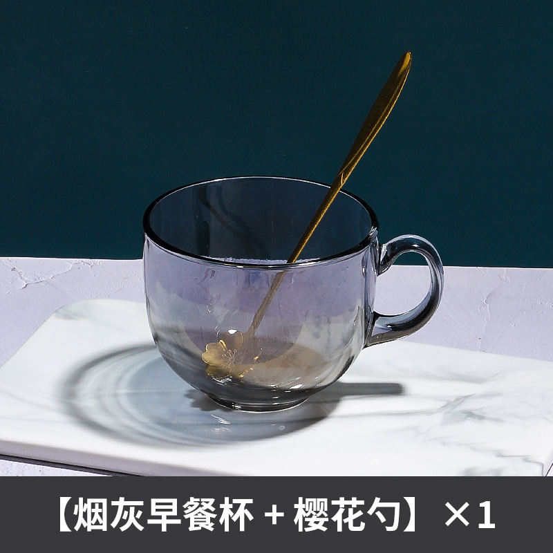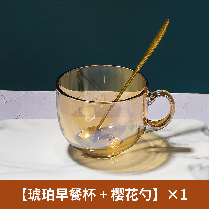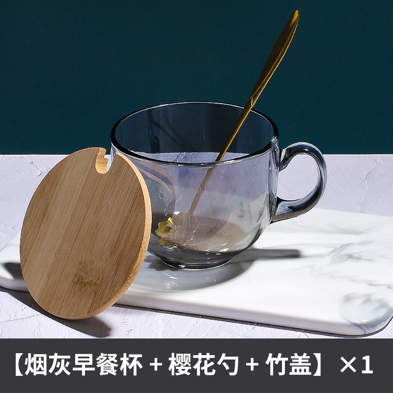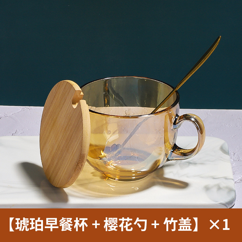茶色玻璃杯燕麦早餐杯子家用带把水杯大容量带盖勺咖啡杯女牛奶杯