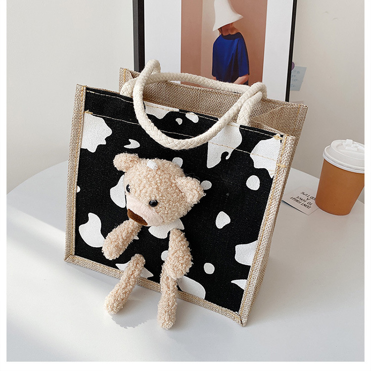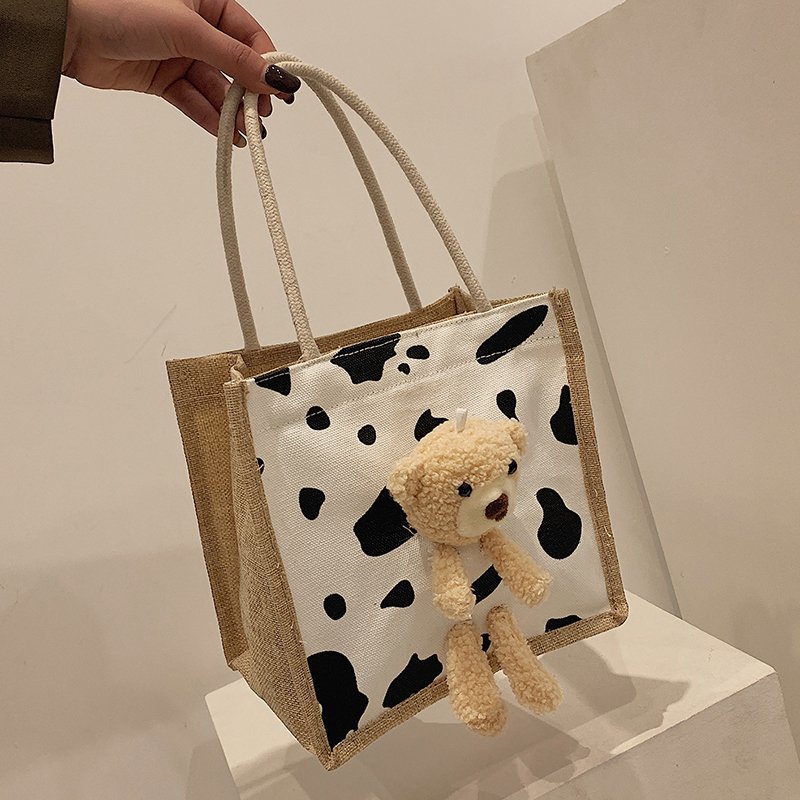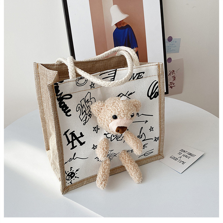 可爱小熊日系麻布袋潮涂鸦包包女包少女时尚帆布手提包