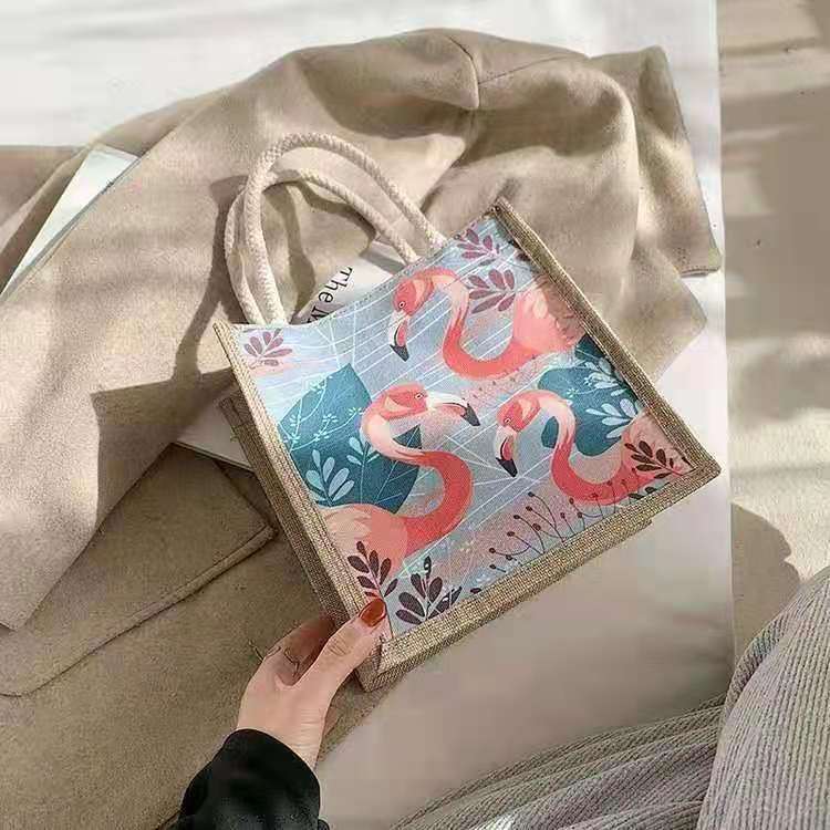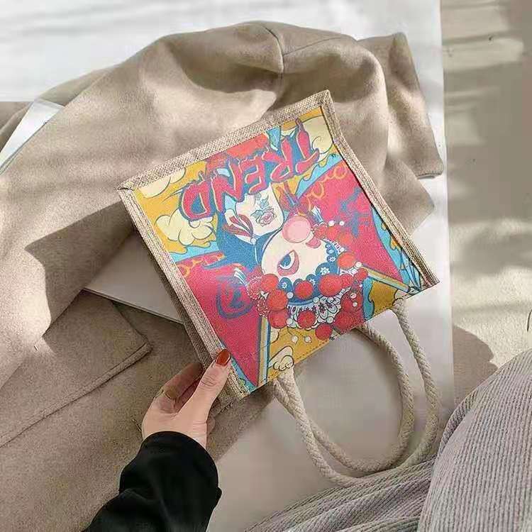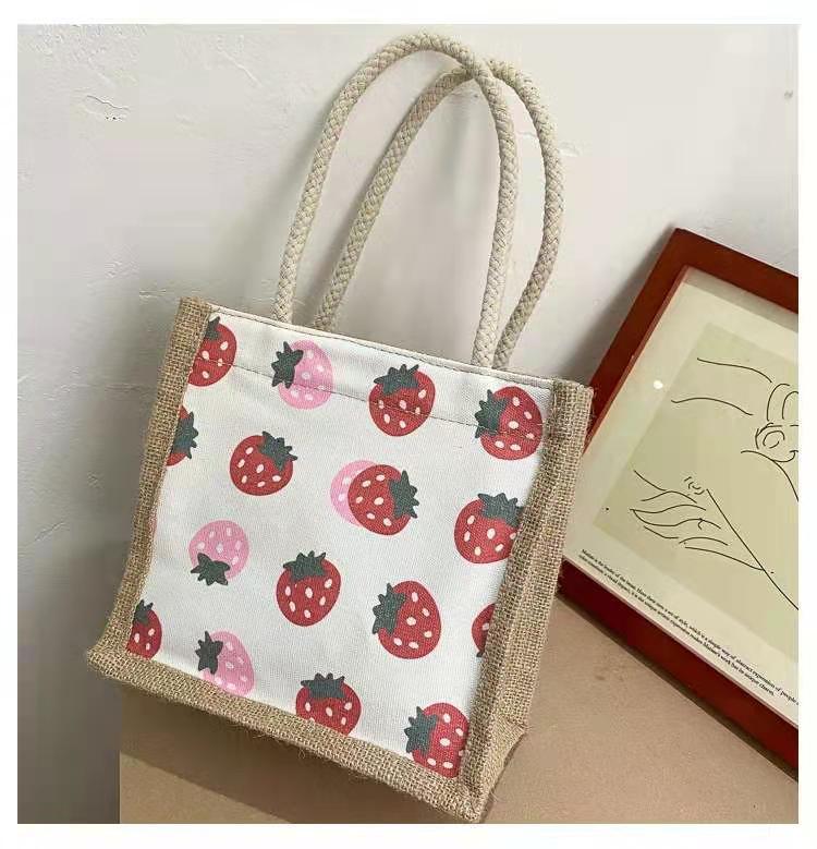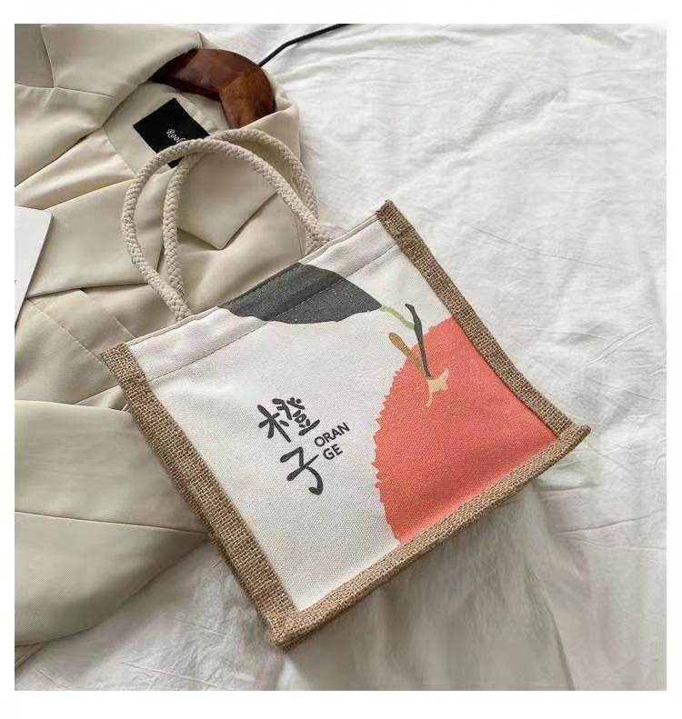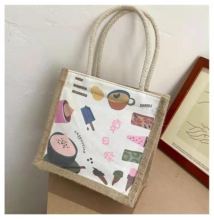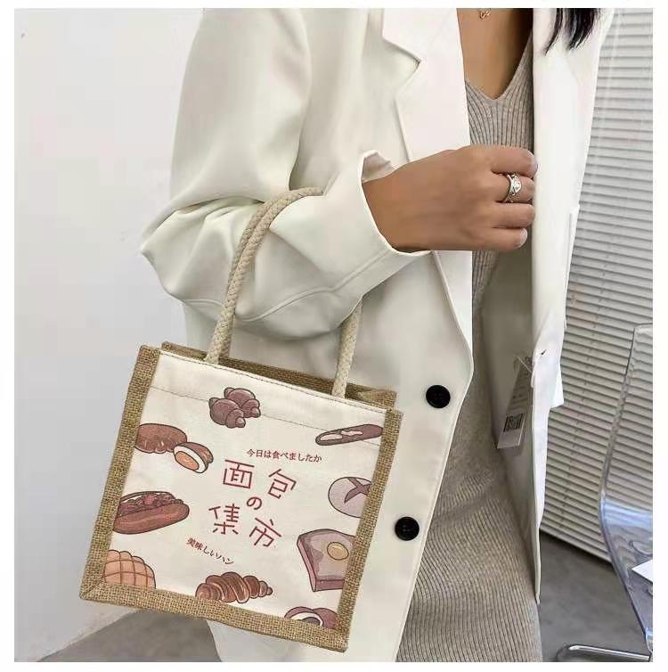 ins 日系棉麻便当包女饭盒手提袋卡通简约大容量韩风大学生上课包