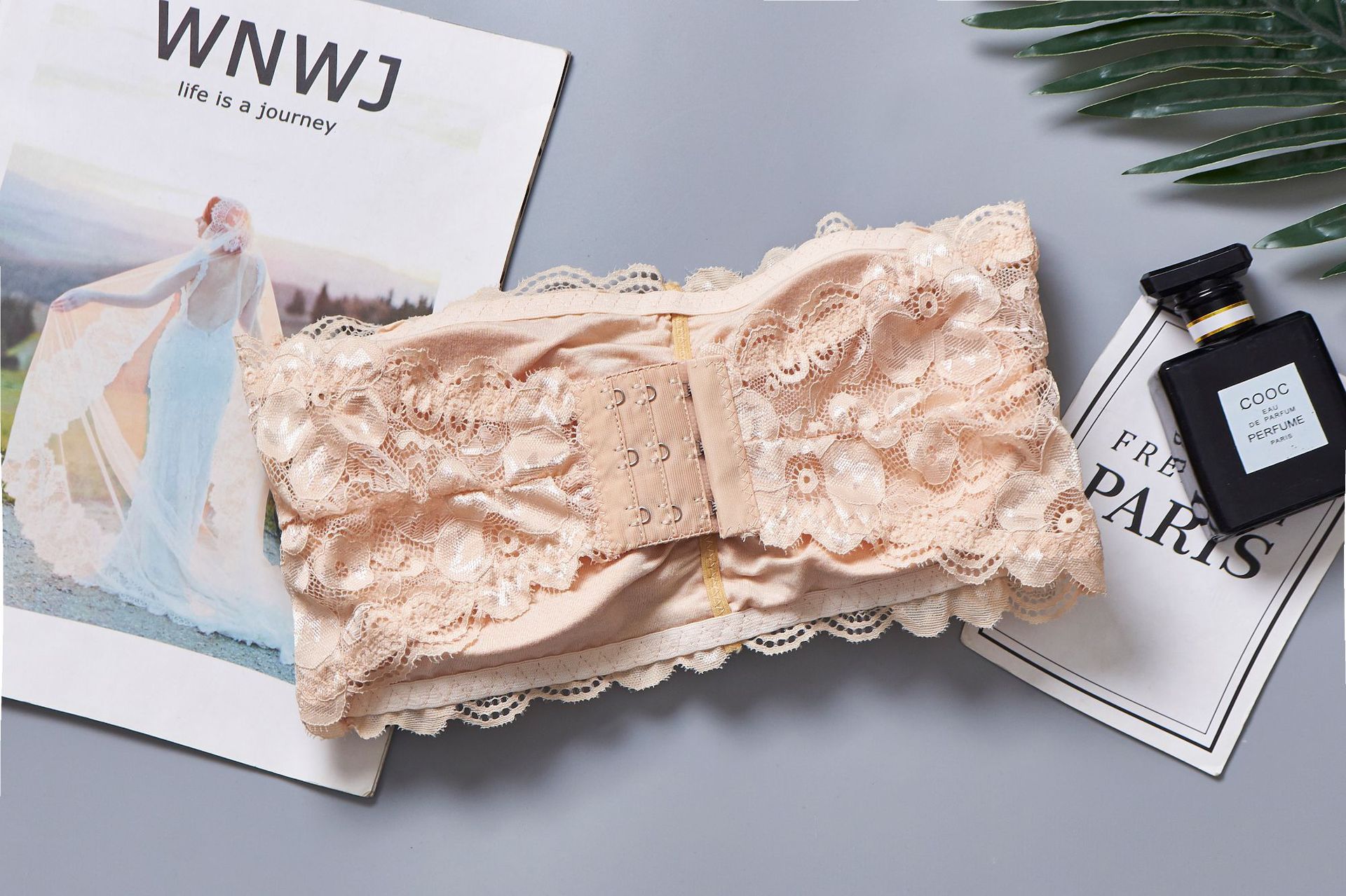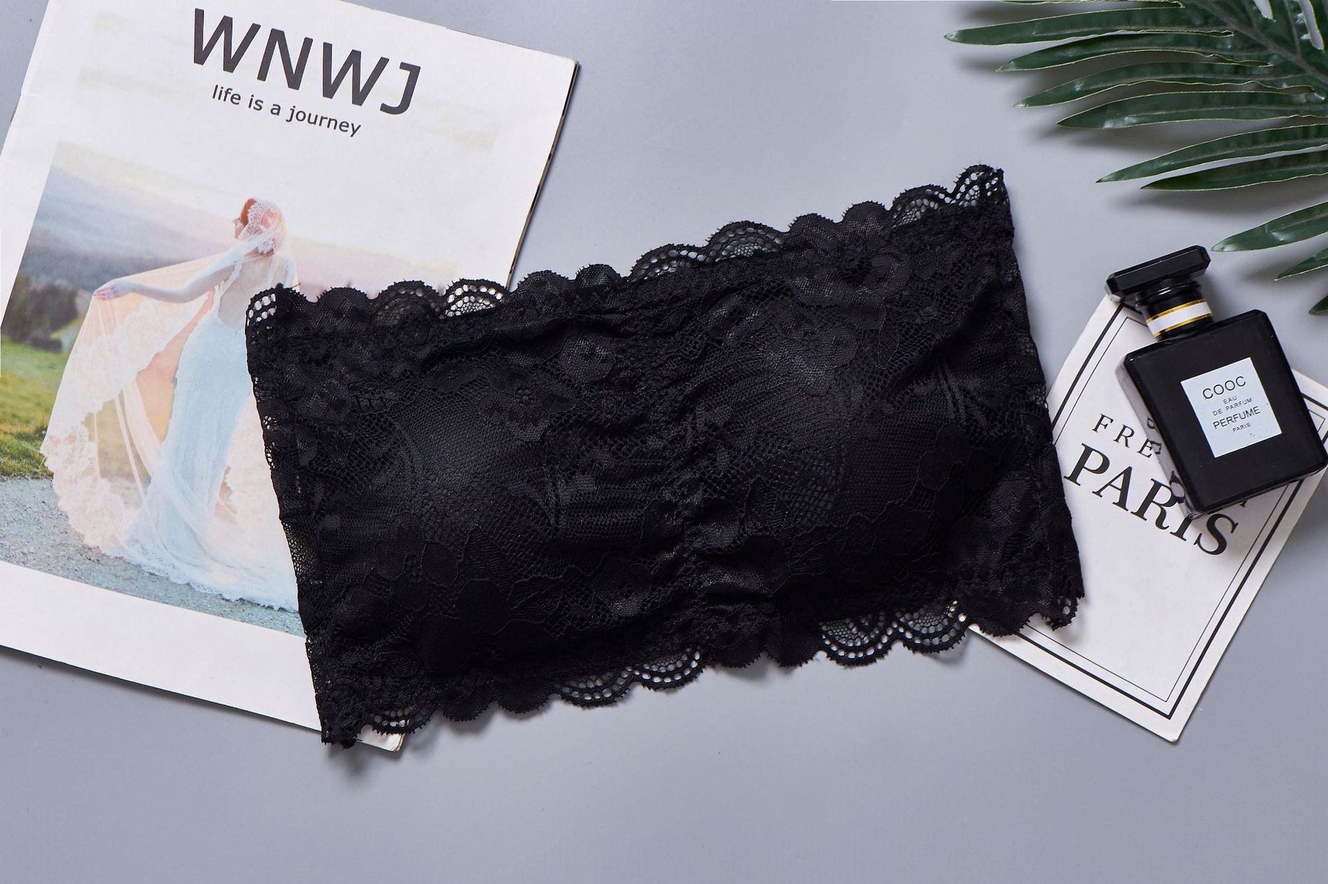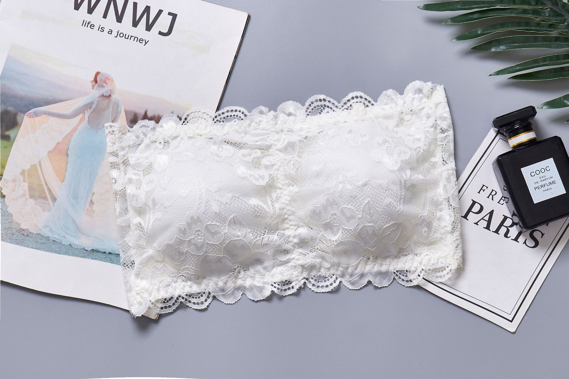 蕾丝无肩带抹胸大码内衣防走光背心带胸垫打底女士美背裹胸一字围