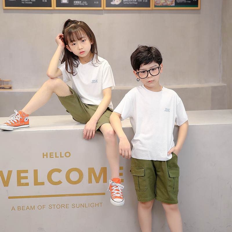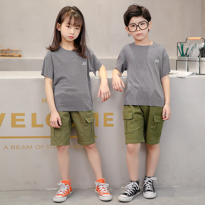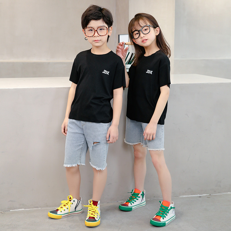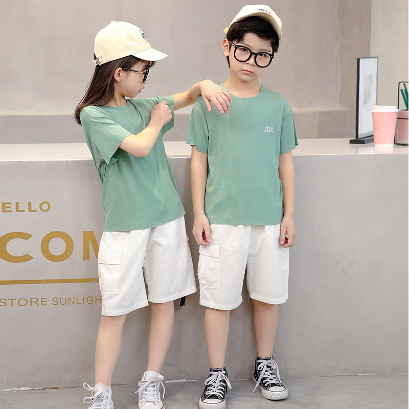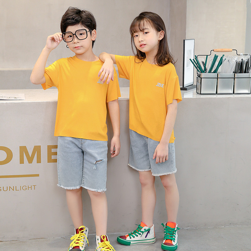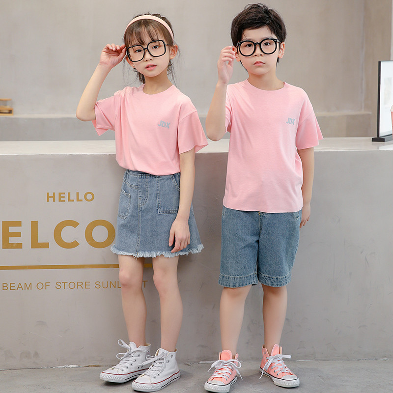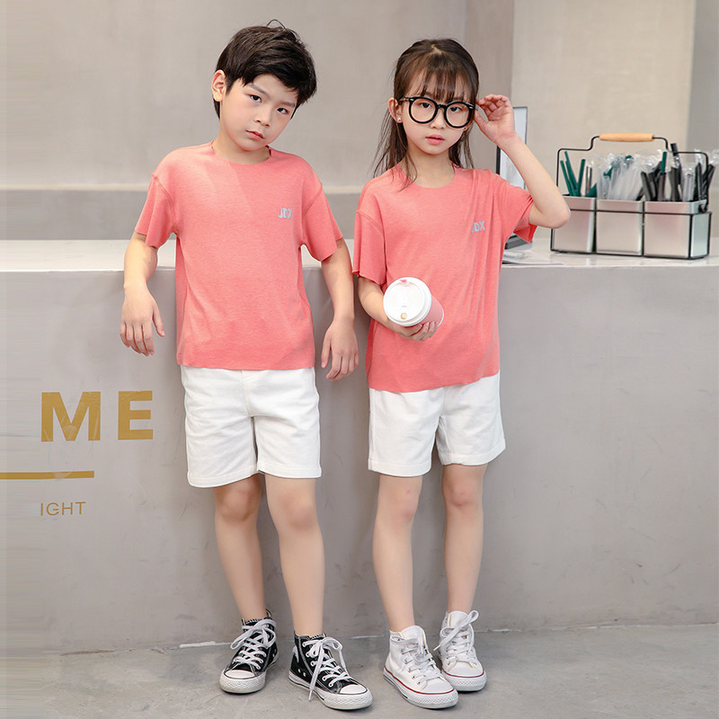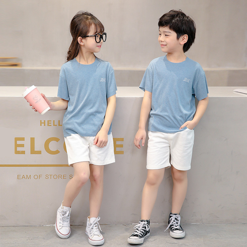 儿童短袖 新款男女童宽松T恤中小童纯色打底衫宝宝薄款家居服睡衣