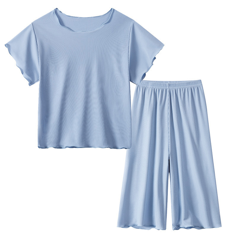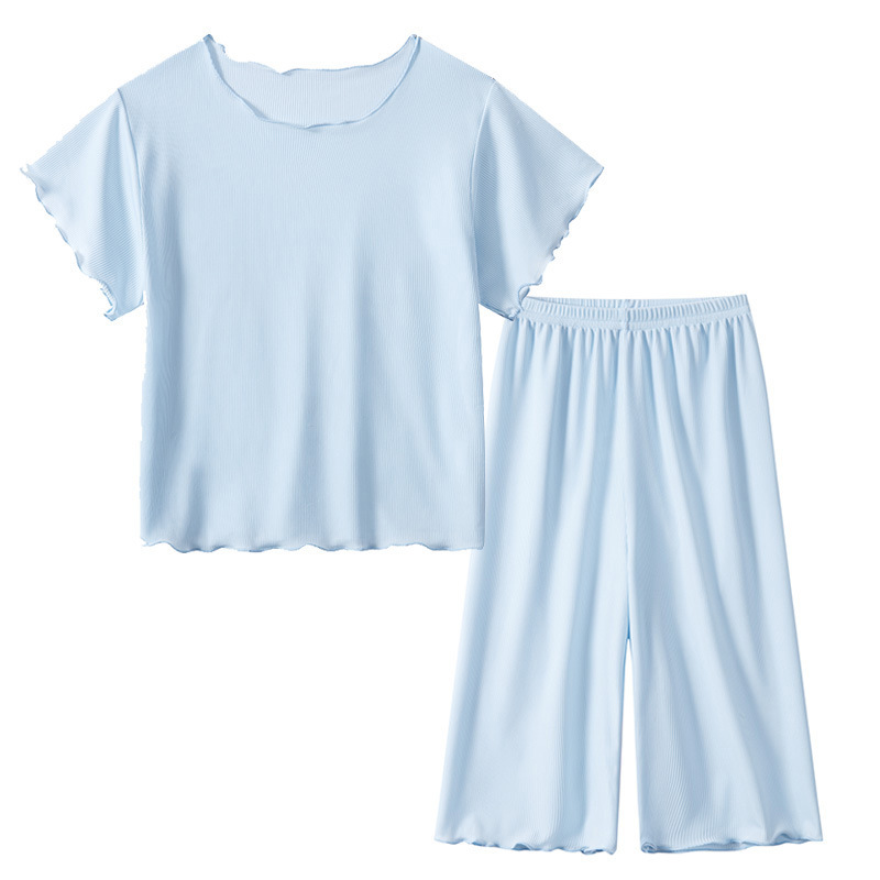儿童家居服夏季薄款亲子装中小童纯色宽松短袖睡衣母女空调服代发