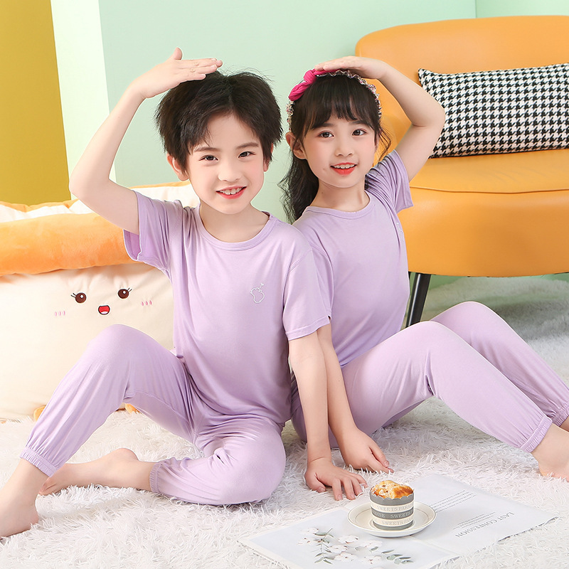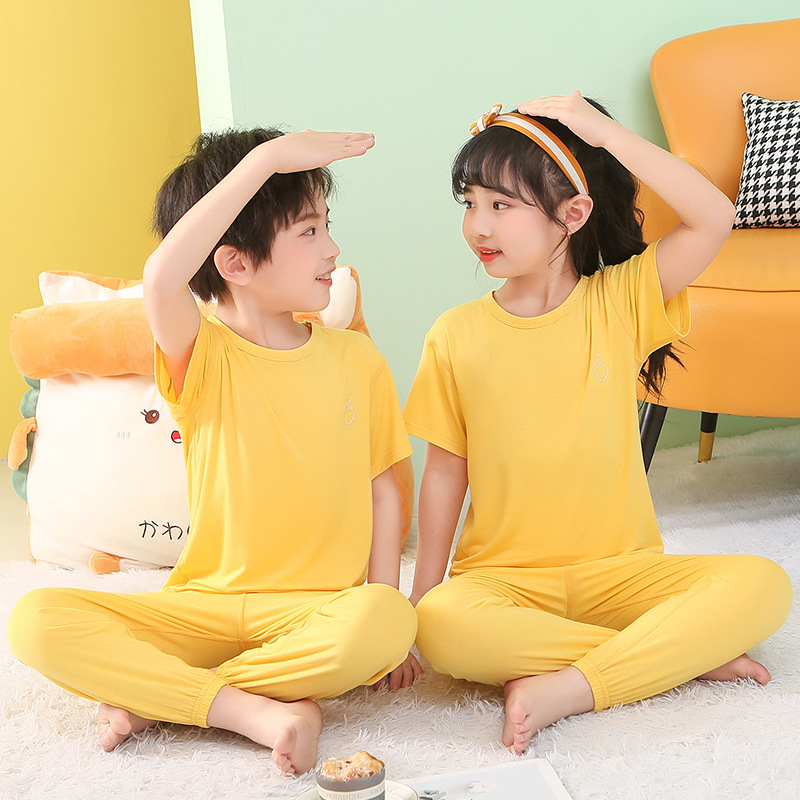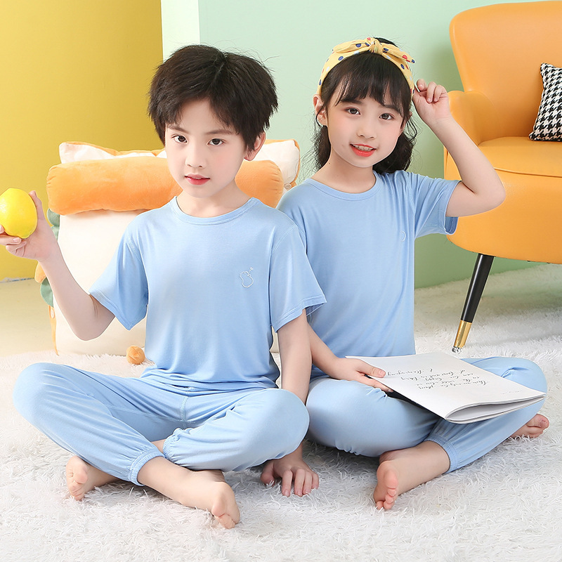 2022新款春夏儿童家居服薄款男童女童韩版短袖长裤睡衣空调服套装