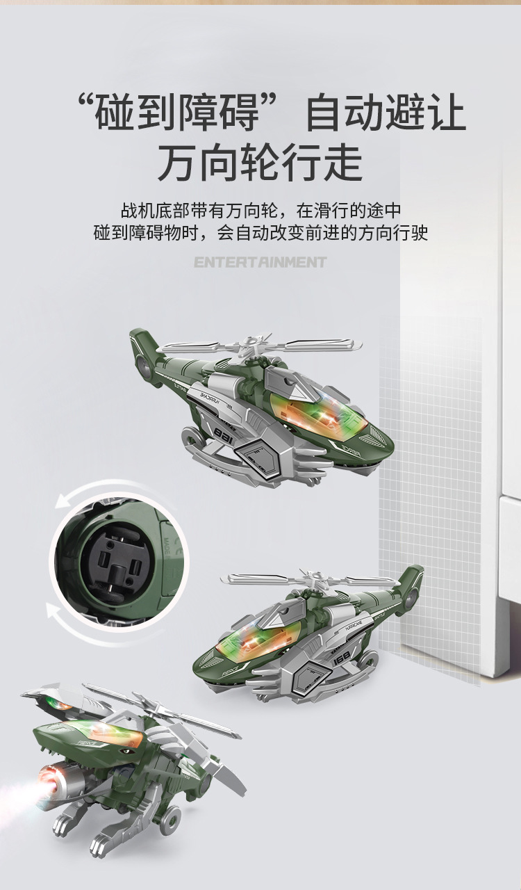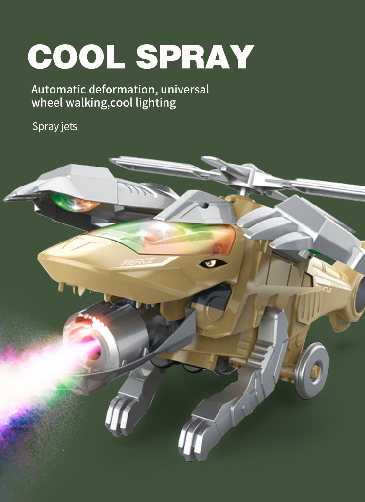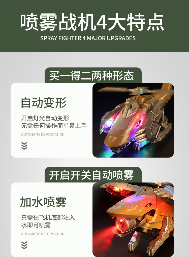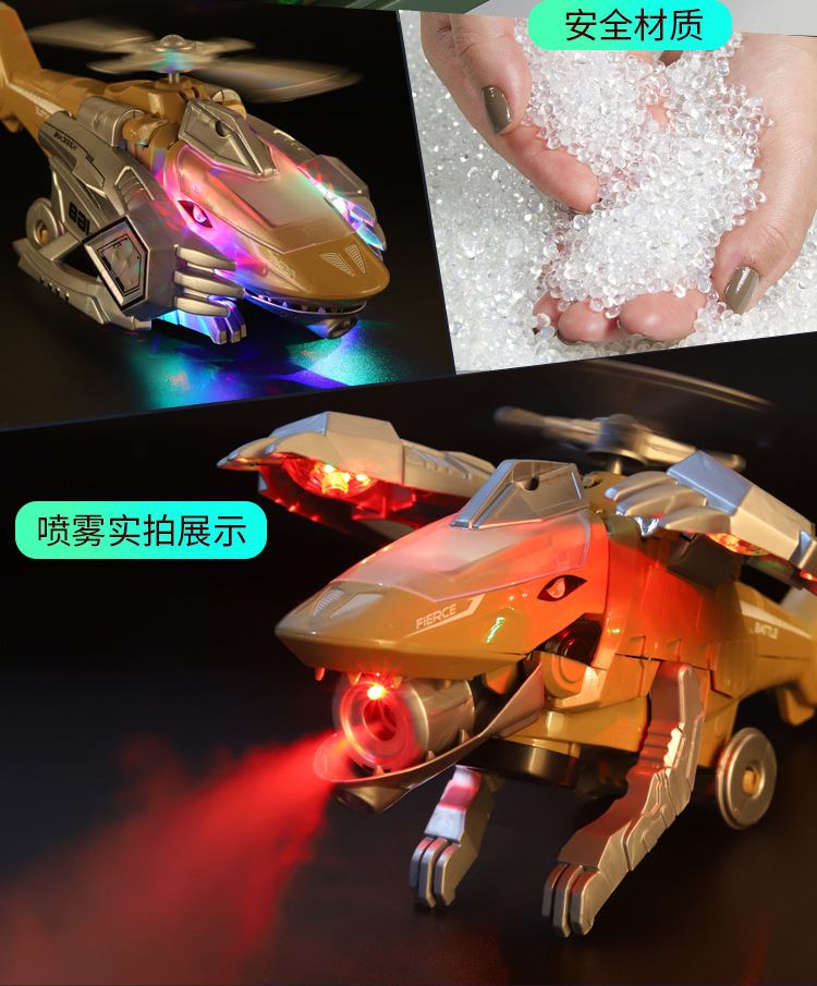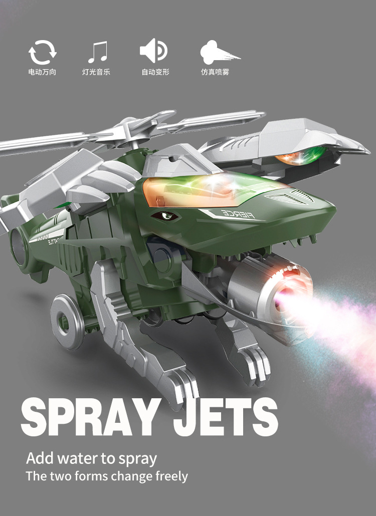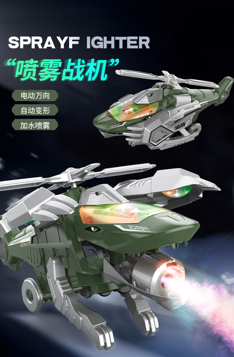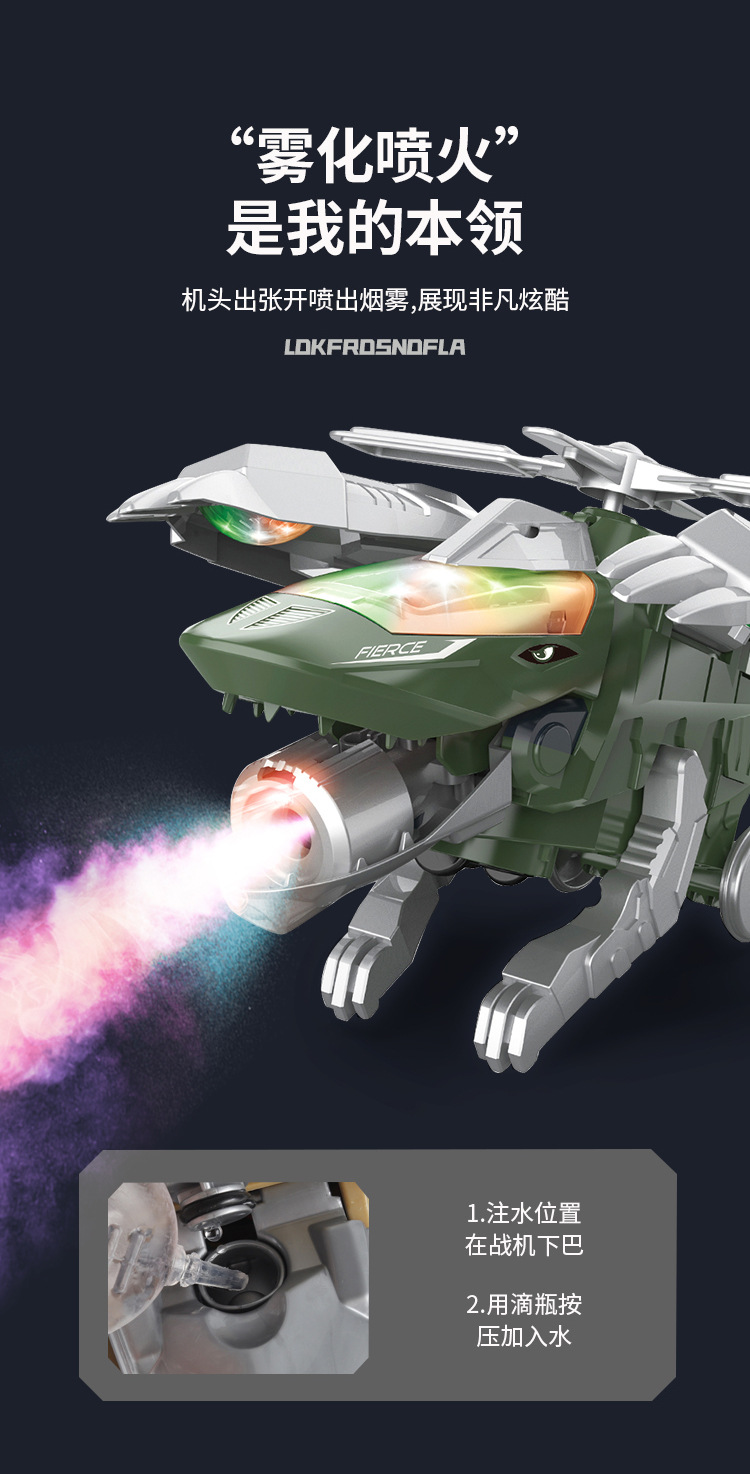 玩具电动万向变形恐龙玩具 喷雾变形战斗机 电动声光儿童变形玩具