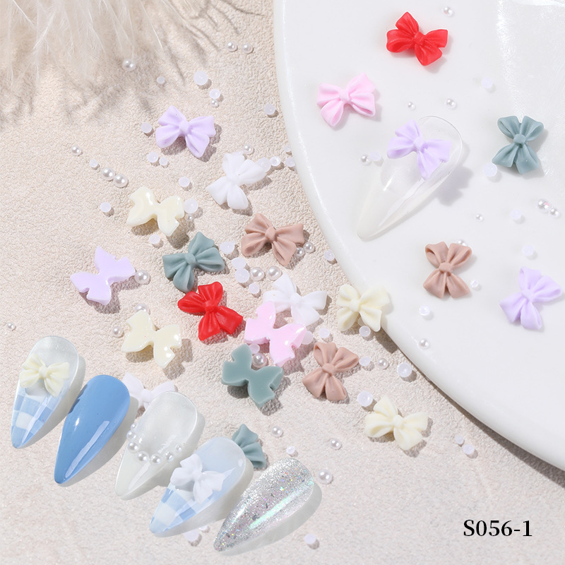 日系网红同款珍珠蝴蝶结美甲配饰INS仙女裸粉树脂立体DIY指甲饰品