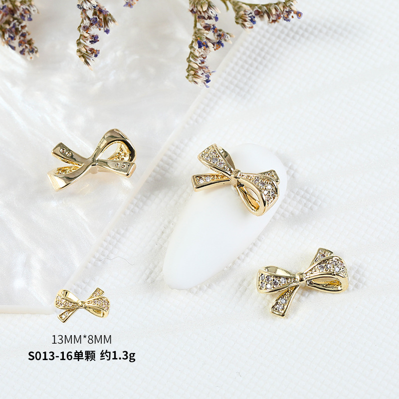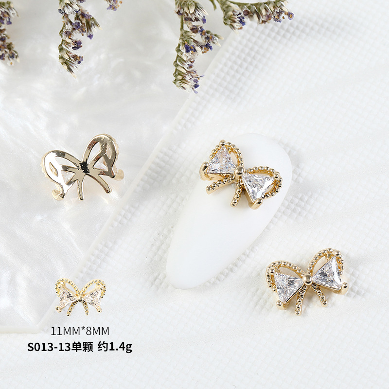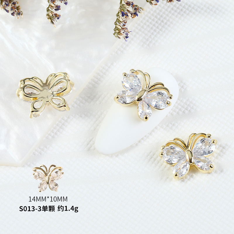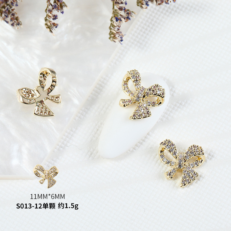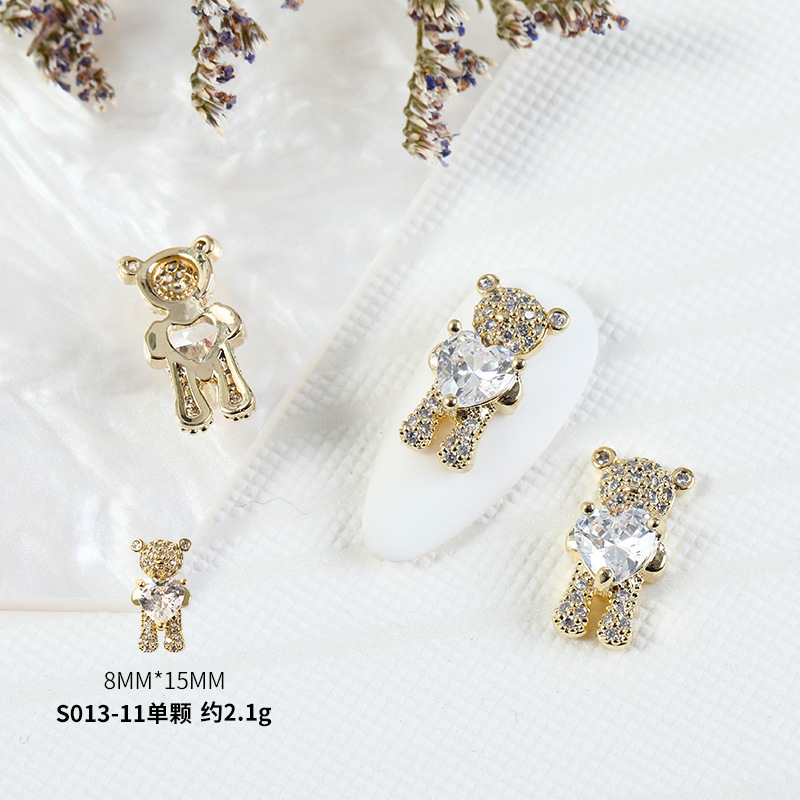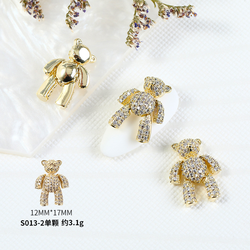 新款美甲锆石饰品渡真金轻奢满钻会动小熊蝴蝶合金吊坠指甲装饰品
