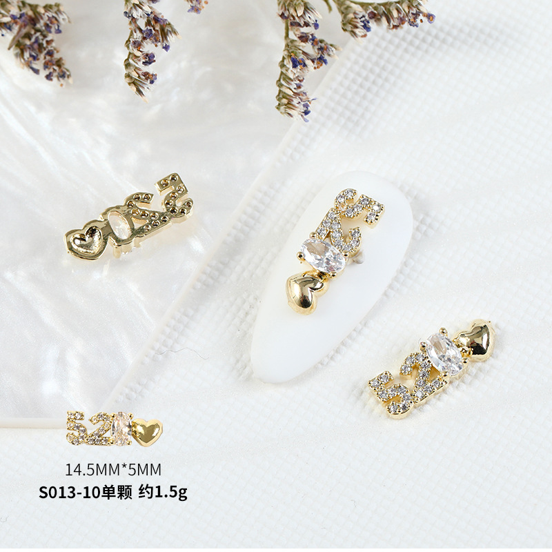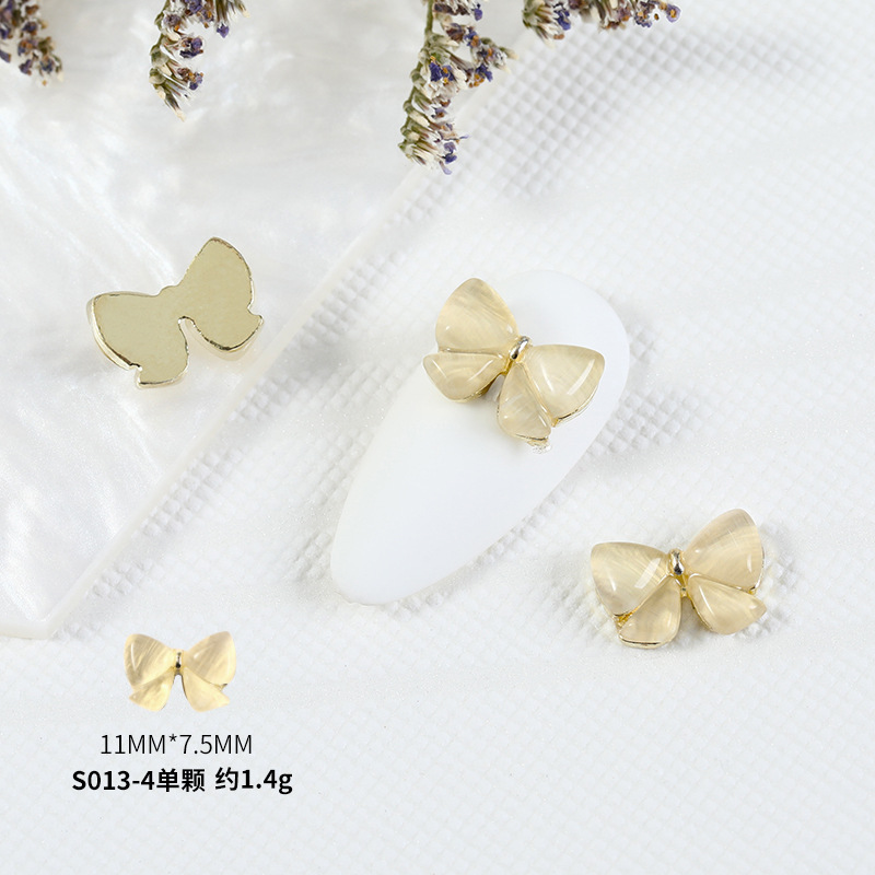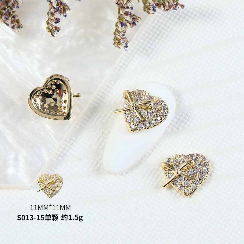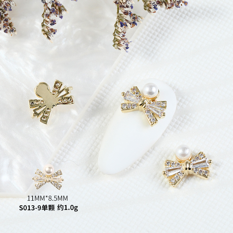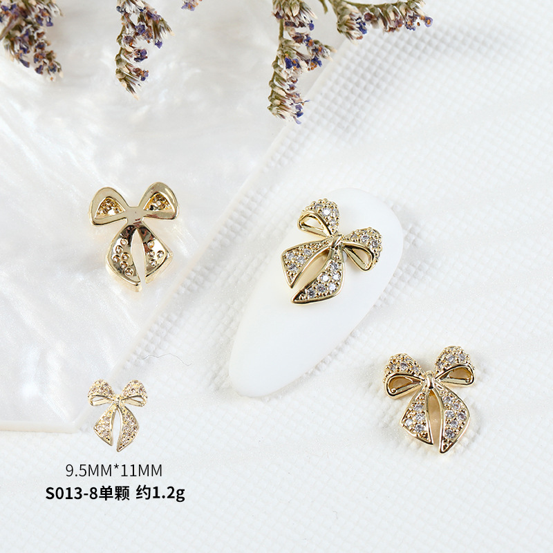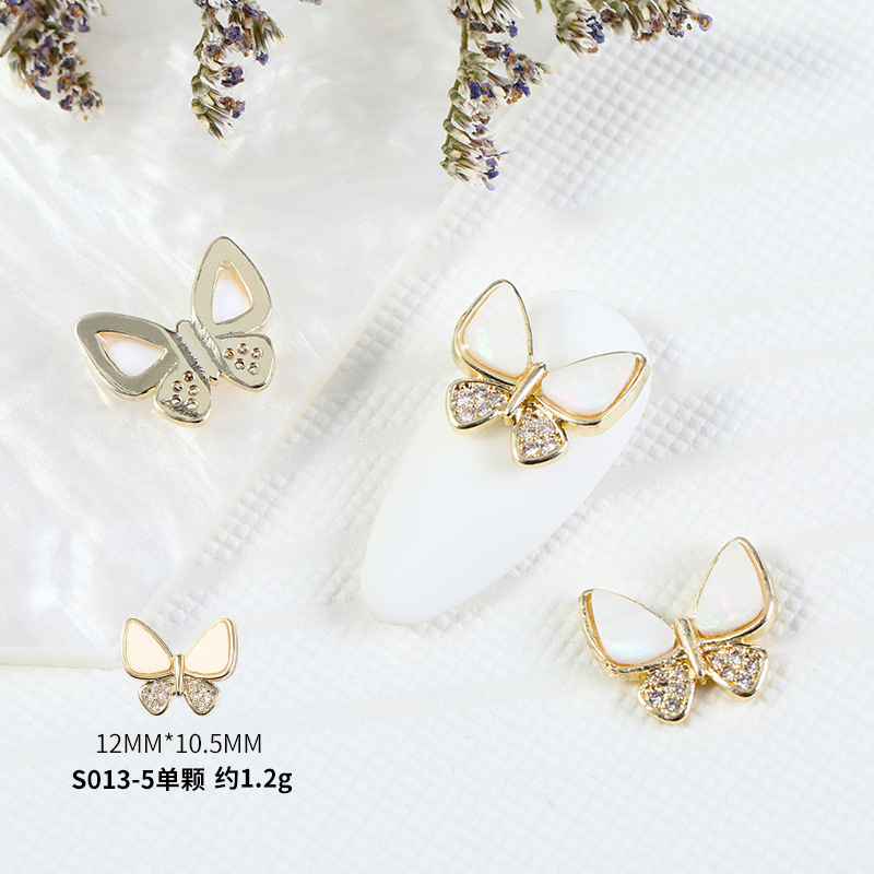 新款美甲锆石饰品渡真金轻奢满钻会动小熊蝴蝶合金吊坠指甲装饰品