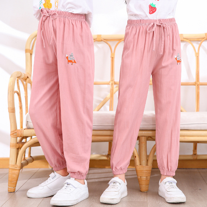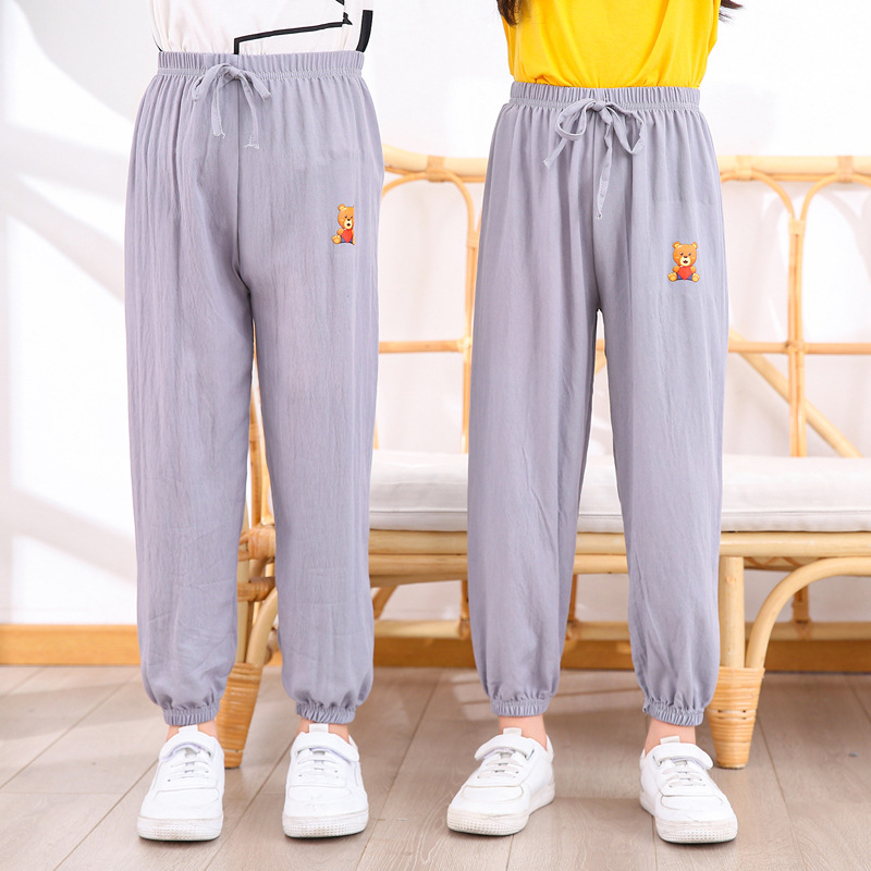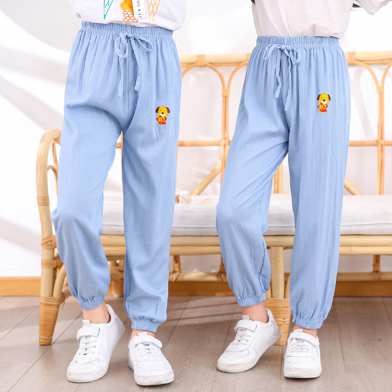 夏季薄款儿童人造棉柔软弹力牛仔防蚊裤男女童卡通运动休闲长裤子