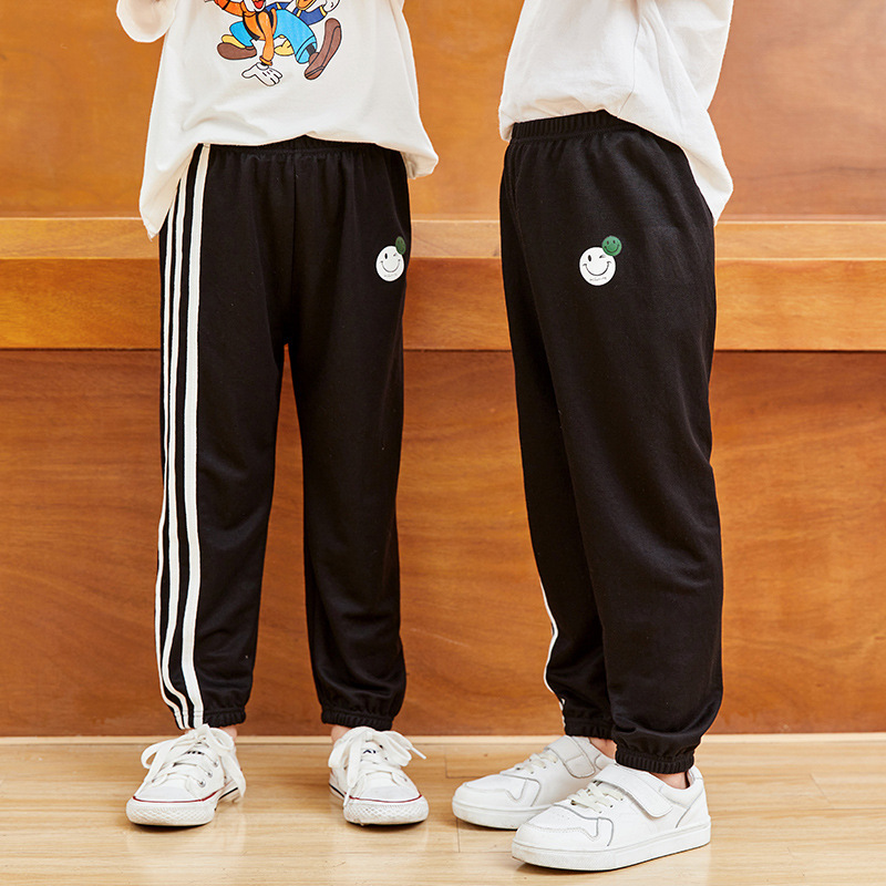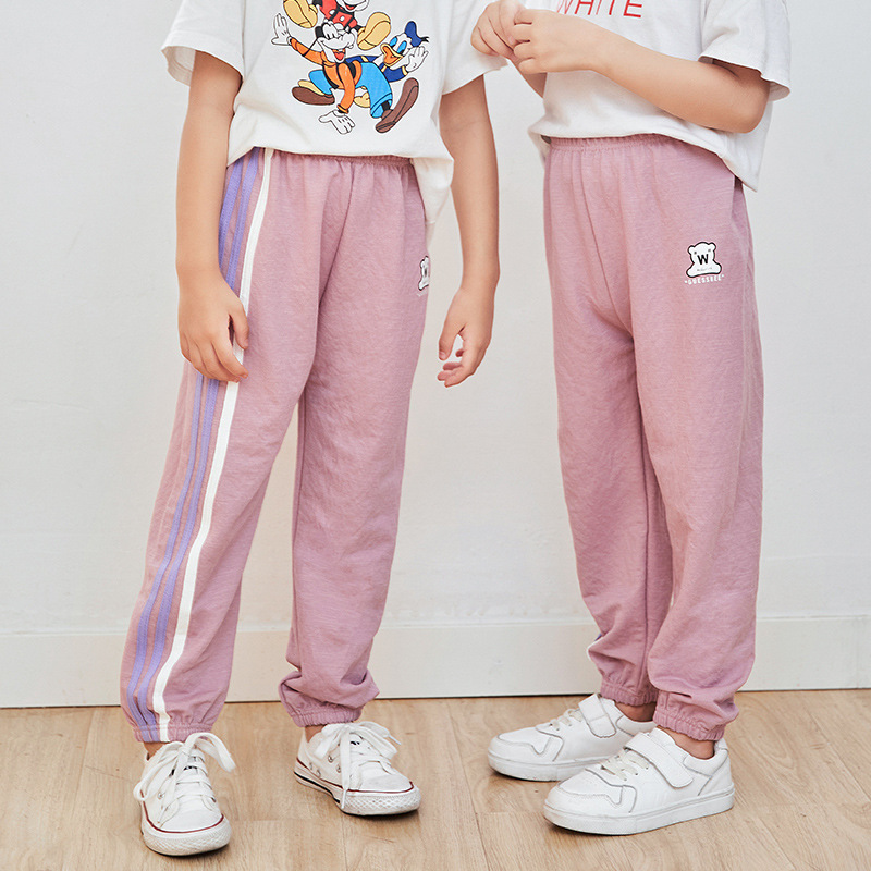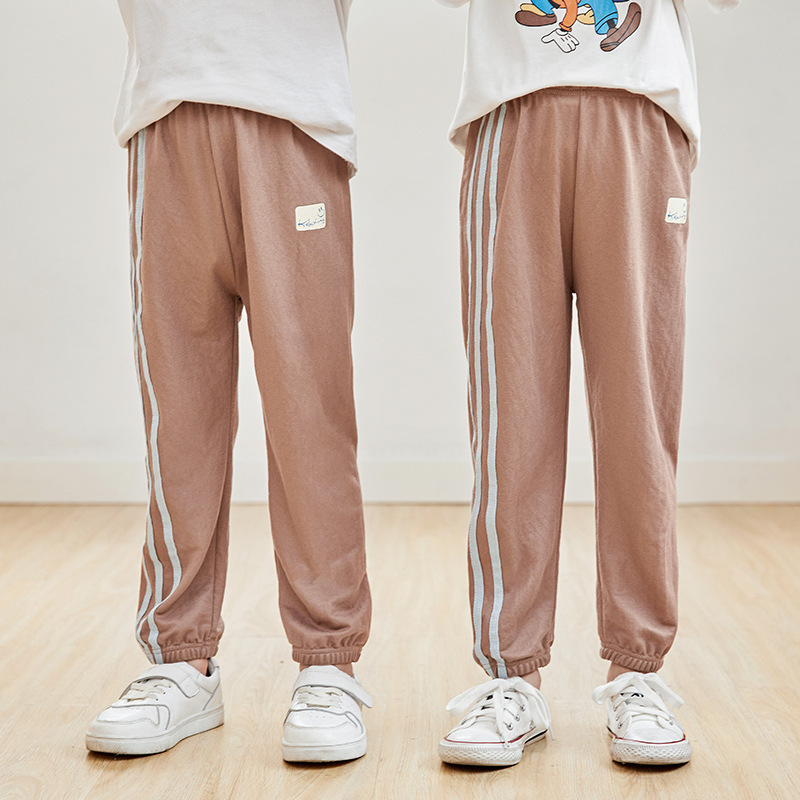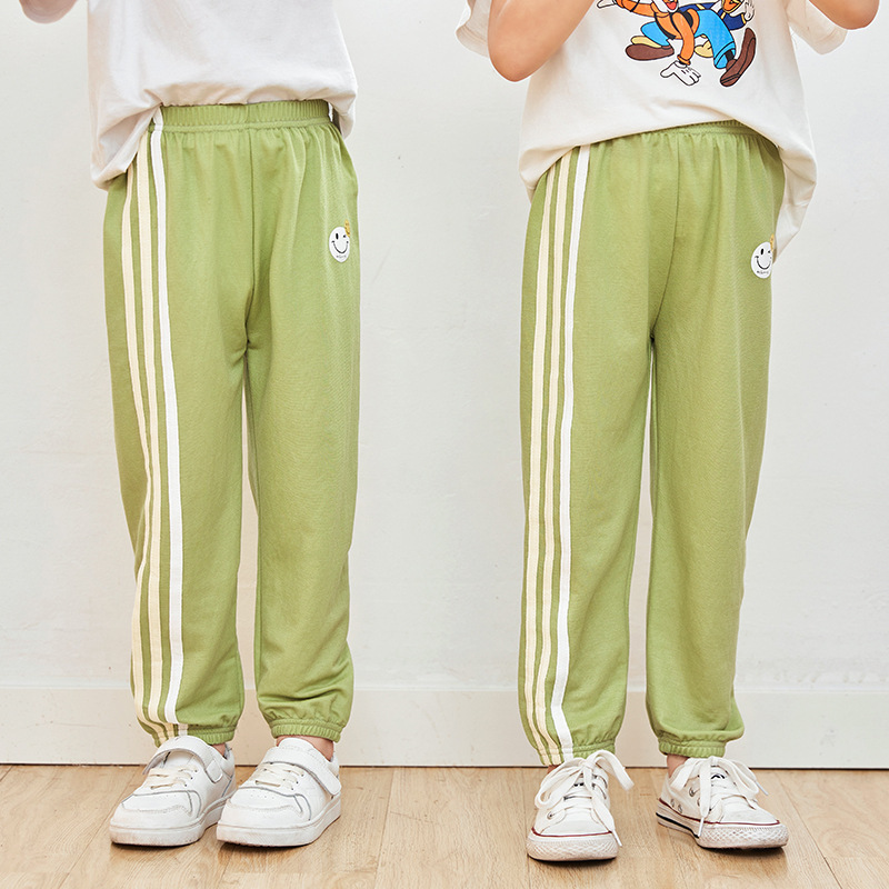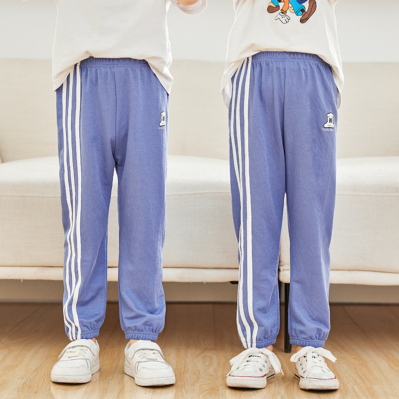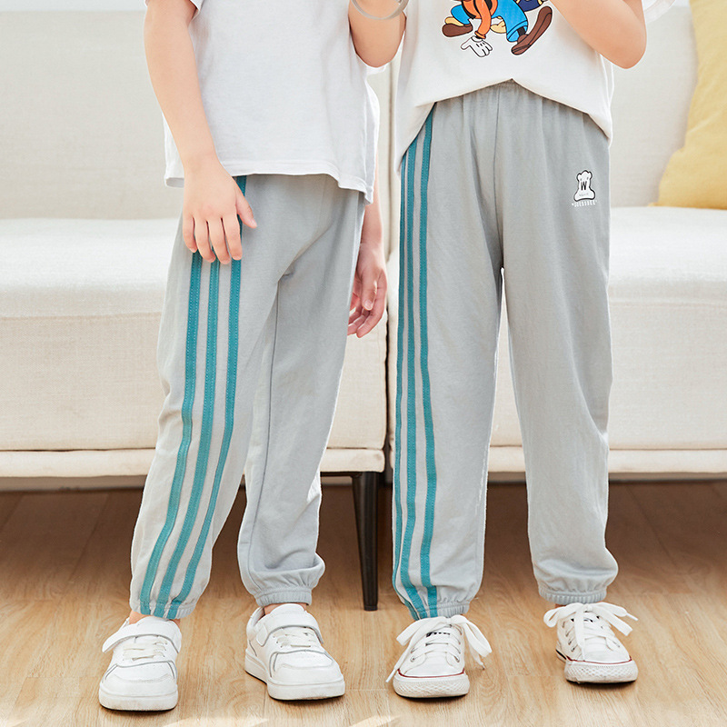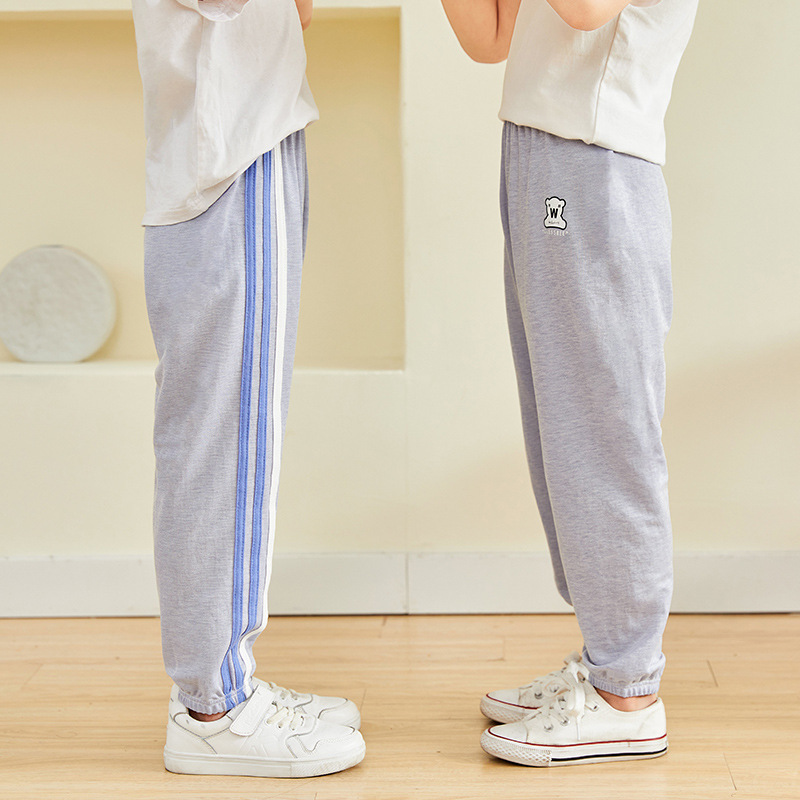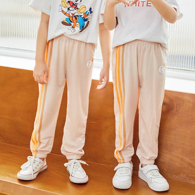 2022夏季薄款儿童条纹休闲防蚊裤中小童宝宝糖果色家居空调运动裤