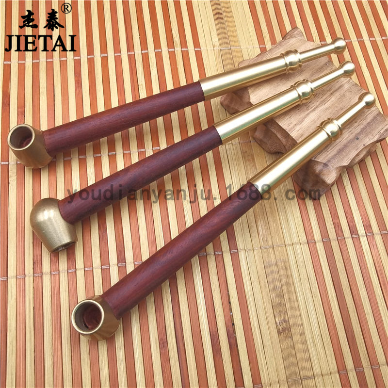 烟斗 老式云贵旱烟杆黄铜烟袋锅子 实木传统卷烟锅烟枪