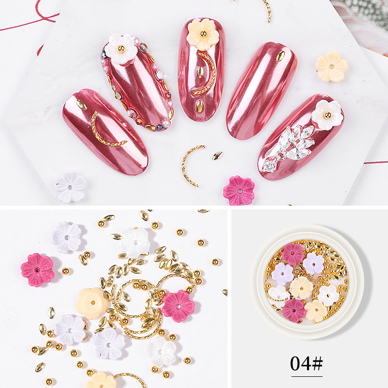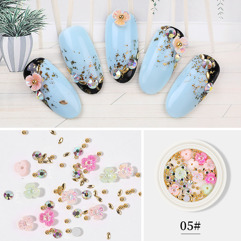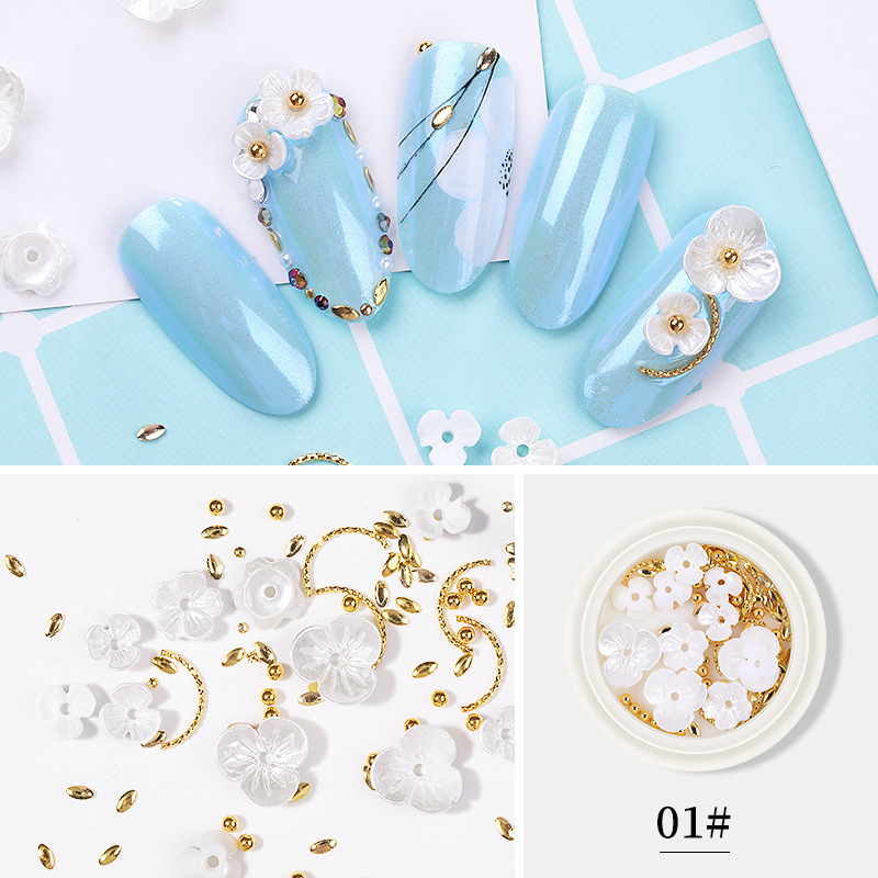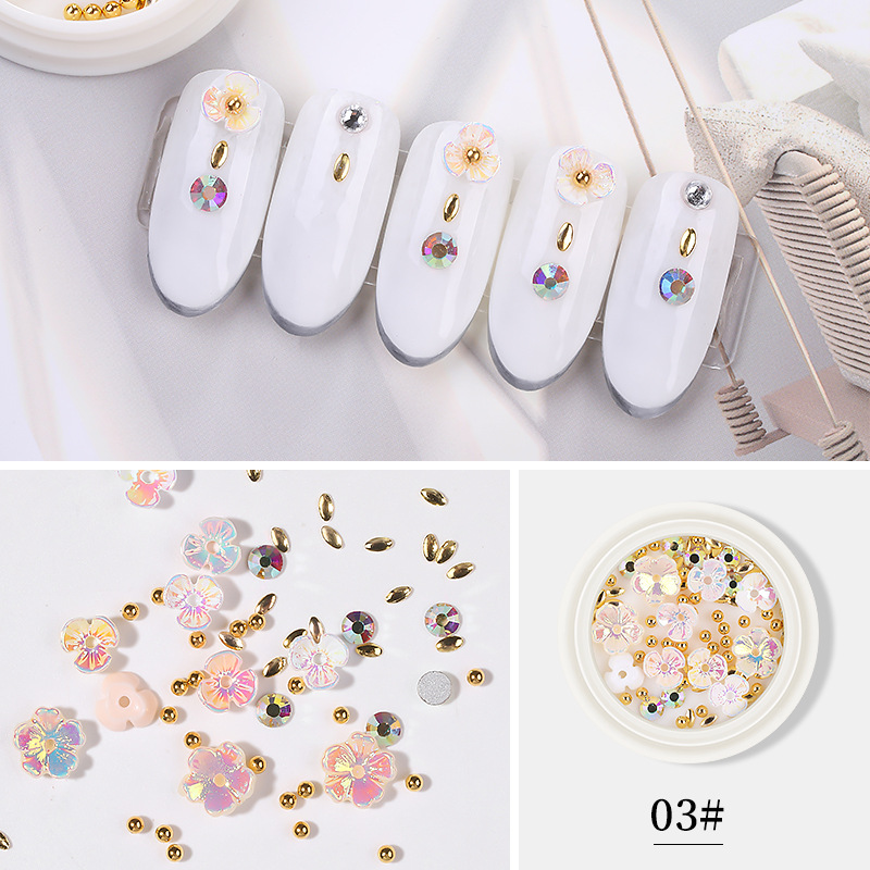 网红同款美甲贝壳花饰品三瓣花朵铆钉钢珠合金钻混装饰品指甲装饰