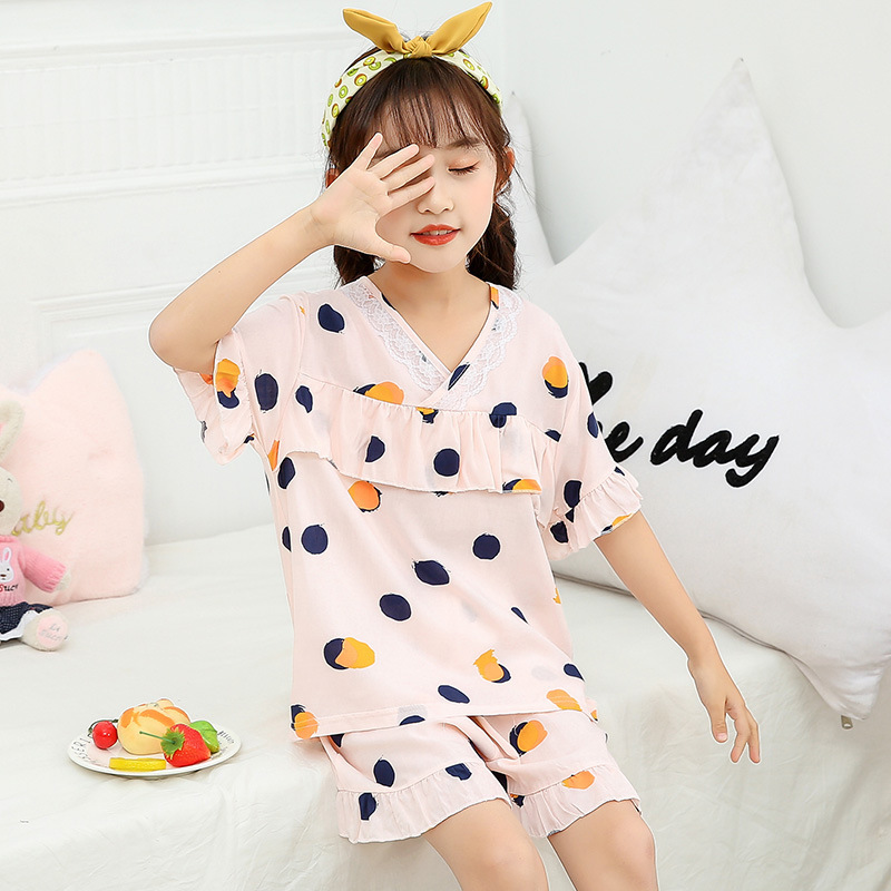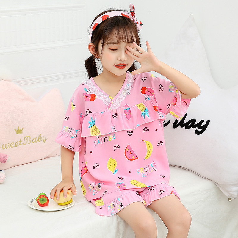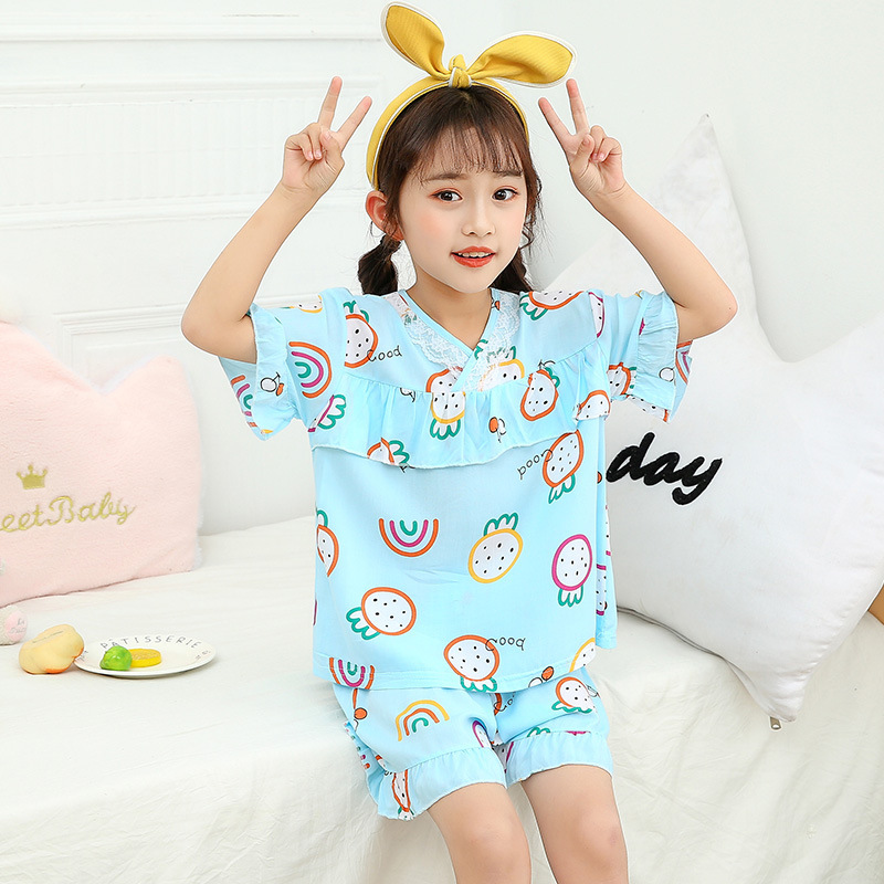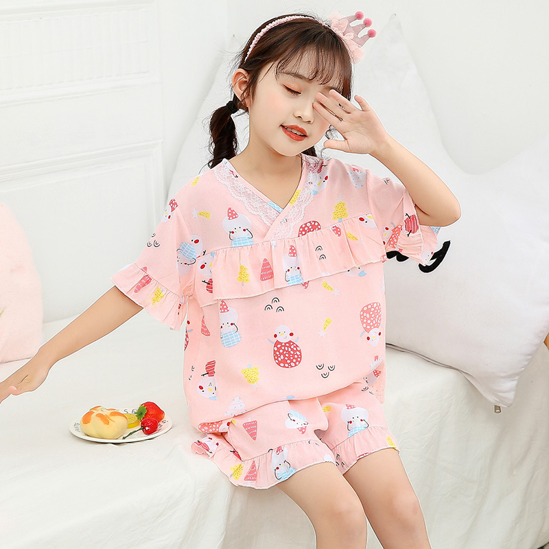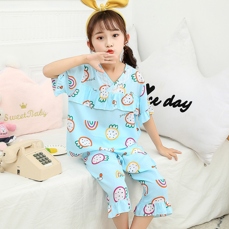 女童绵绸睡衣小女孩短袖短裤套装宝宝蕾丝花边宽松家居服两件套潮